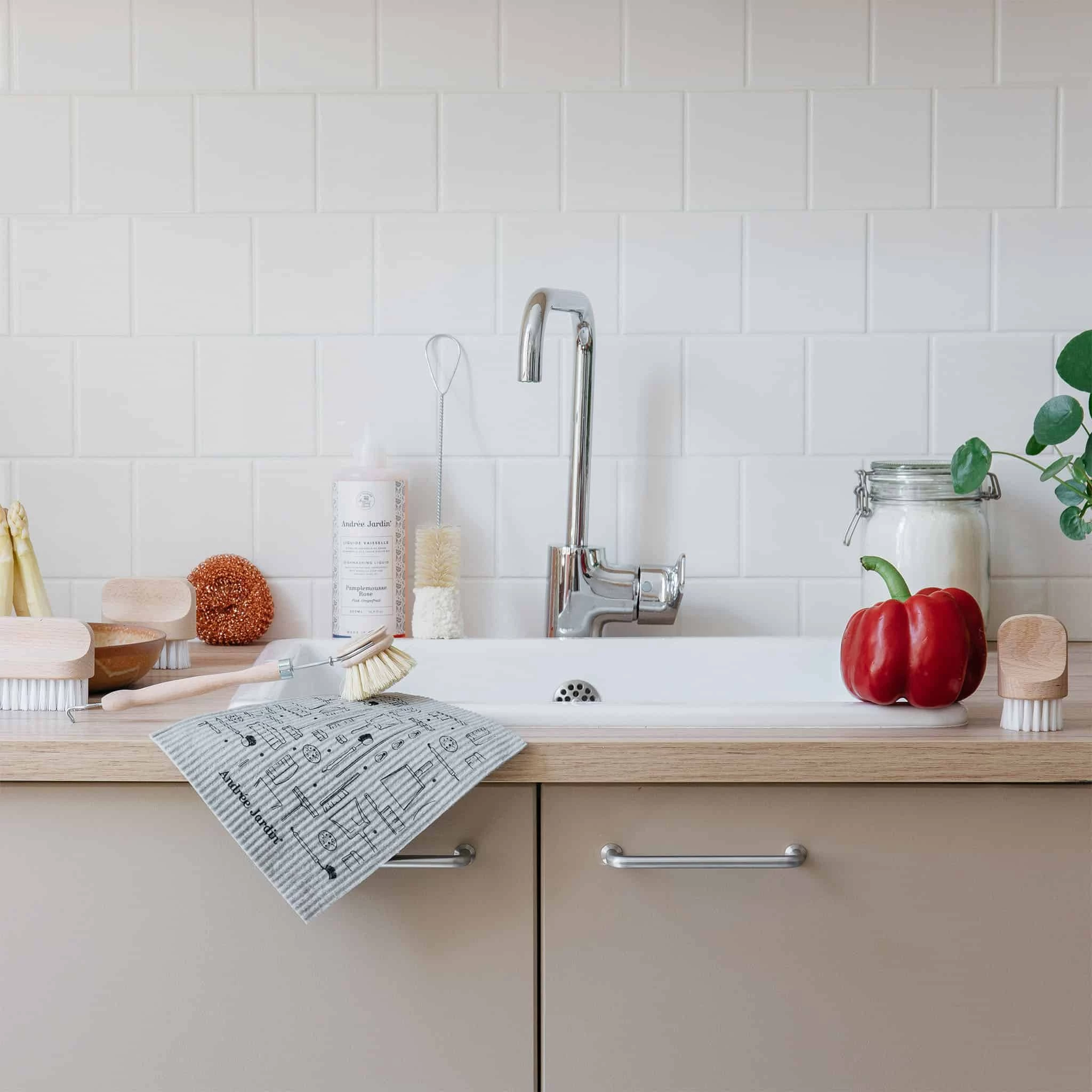 Questi due strofinacci riutilizzabili Andree Jardin svedesi sono realizzati in pasta 100% di legno di cellulosa e sono biodegradabili.Affascinanti illustrazioni, sono una chic eco aggiunta al vostro armadio di pulizia.