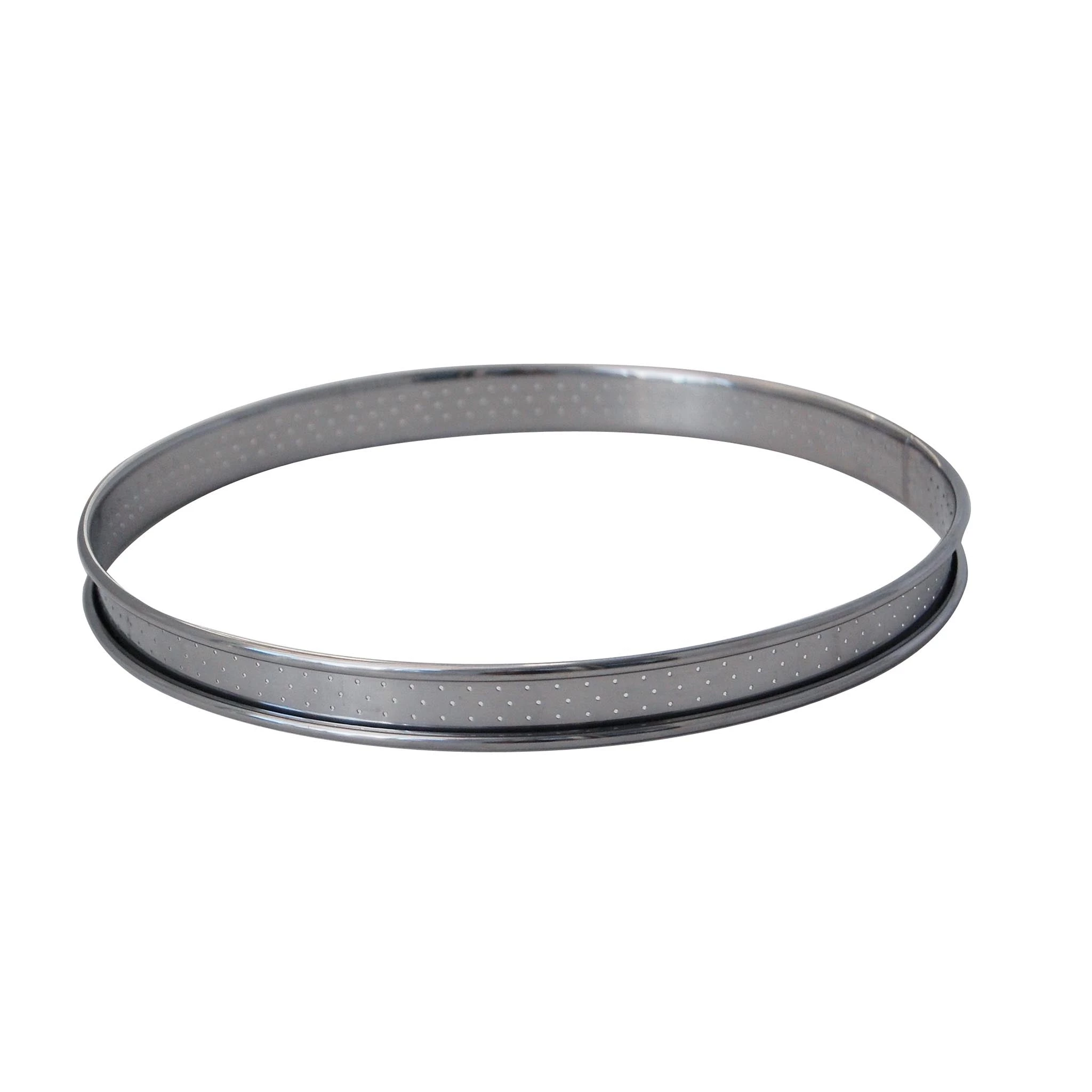 Gli anelli di crostata in acciaio inox perforati permettono la fuga del vapore durante la cottura per croste perfettamente croccanti. Le perforazioni aiutano anche a rimuovere bolle d’aria nella pasta per una superficie priva di imperfezioni.Disponibile in tre dimensioni: