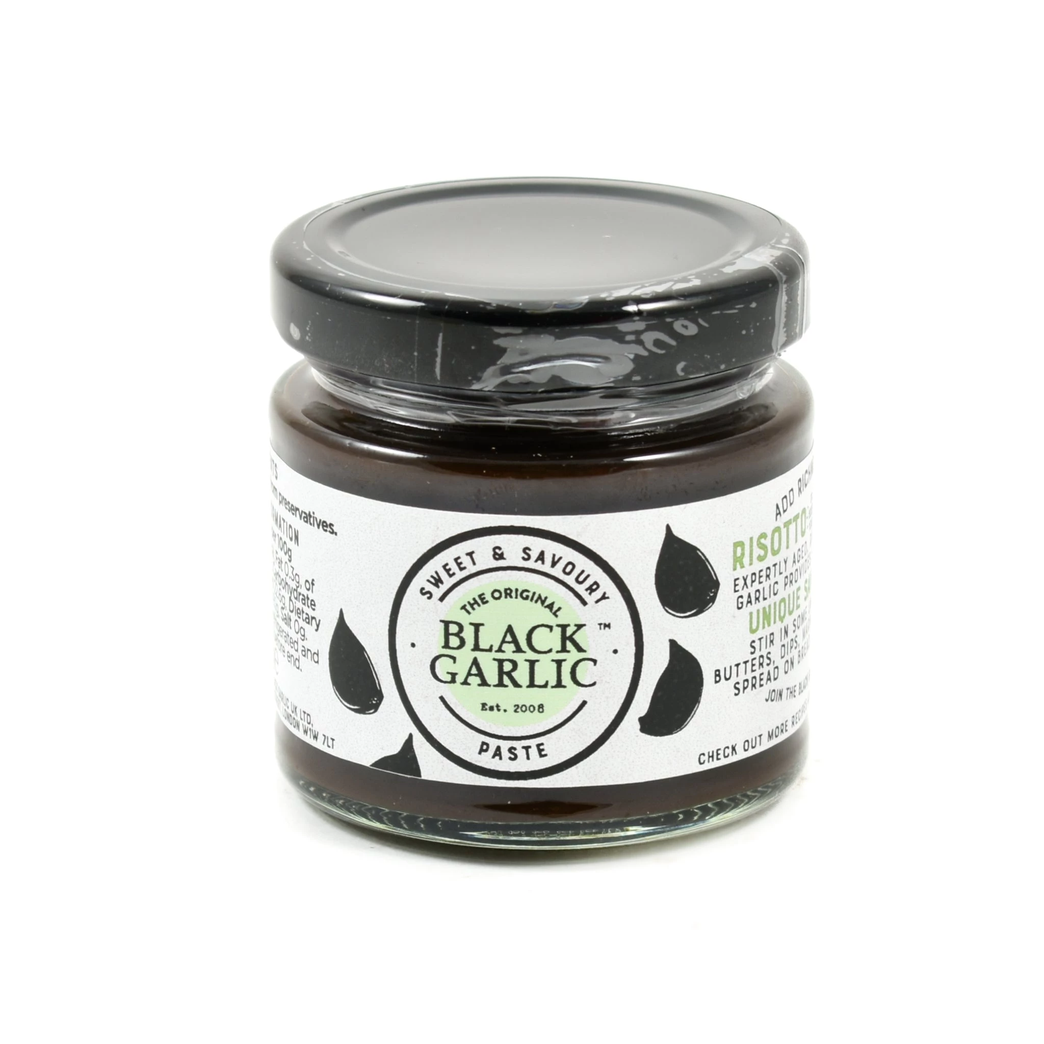 Un cucchiaio di pasta d’aglio nero in zuppe, stufati, salse e risotti aggiunge indolcezza immediata e profondità umami. Stendere su una base di pizza fatta in casa per un’alternativa unica alla salsa di pomodoro, o frustare con olio d’oliva per un facile condimento dell’insalata.