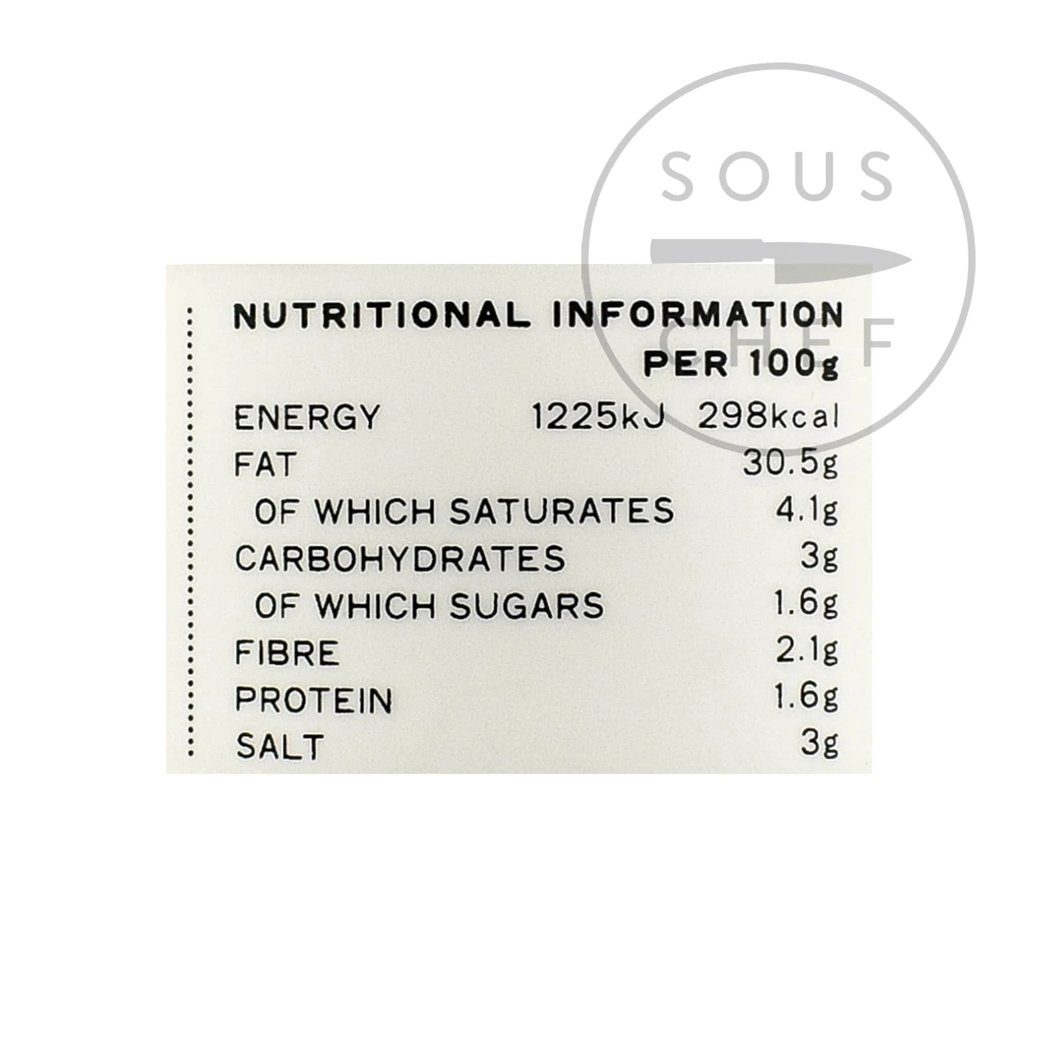 IIngredienti: olio di girasole, coriandolo (31%), acqua, prezzemolo (9%), sale, peperoni jalapeno essiccati, purea d’aglio, chiodi di garofano, basilico, cardamomo, cumino, zucchero, regolatore di acidità: acido citrico.