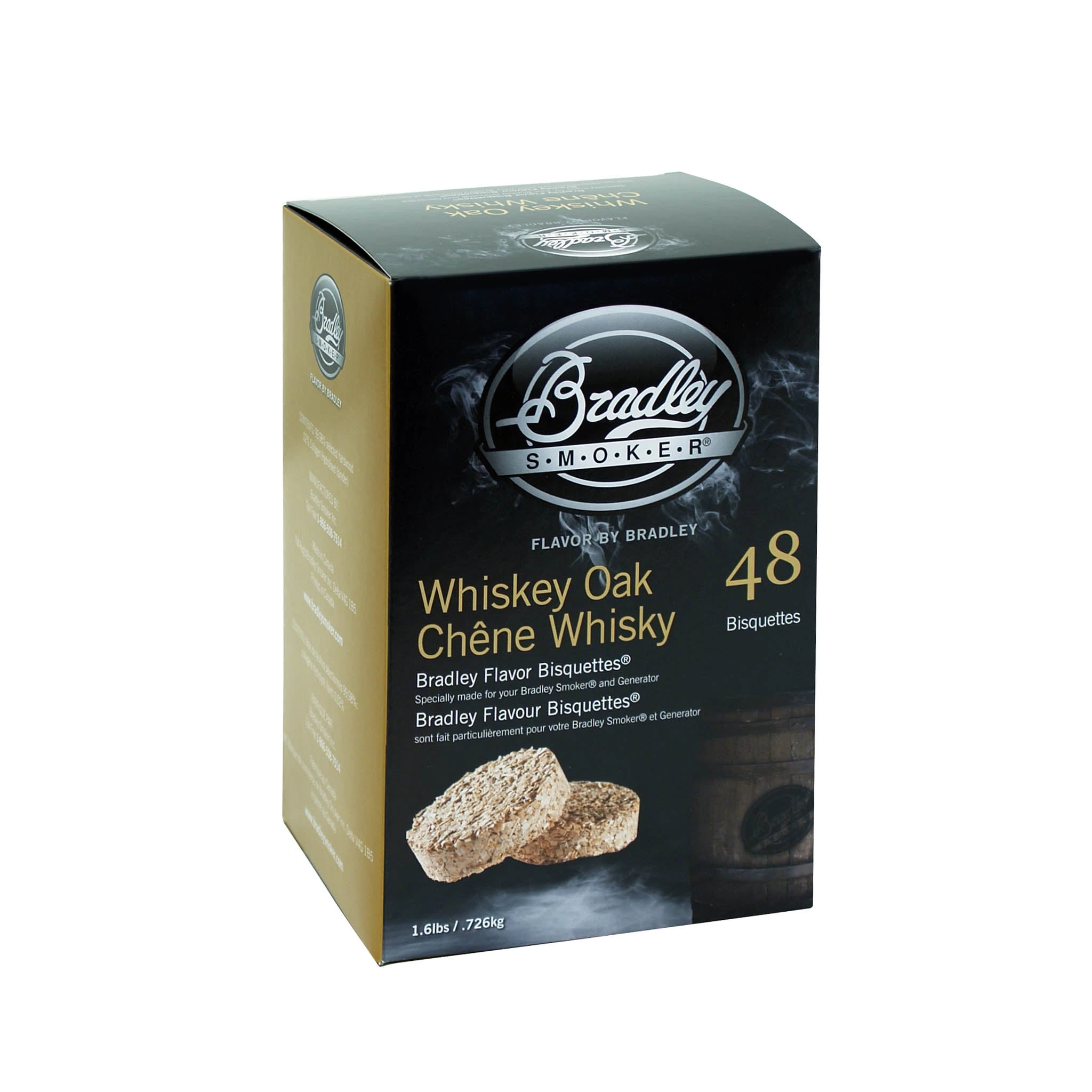Bradley bisquettes sono stati una delle prime cose da sviluppare quando la famiglia Bradley stava cercando di perfezionare la loro tecnica di fumo. I bisquette unici producono fumo che è quattro volte più pulito rispetto al fumo pQuesto significa che si ottiene un sapore eccezionale per non parlare del fatto che fumo più pulito significa cibo affumicato più sano. La combustione dei bisquette è controllata dal generatore di fumo ogni bisqueQuesto pacchetto di 48 bisquette di quercia da whisky fornisce 16 ore di fumatori.