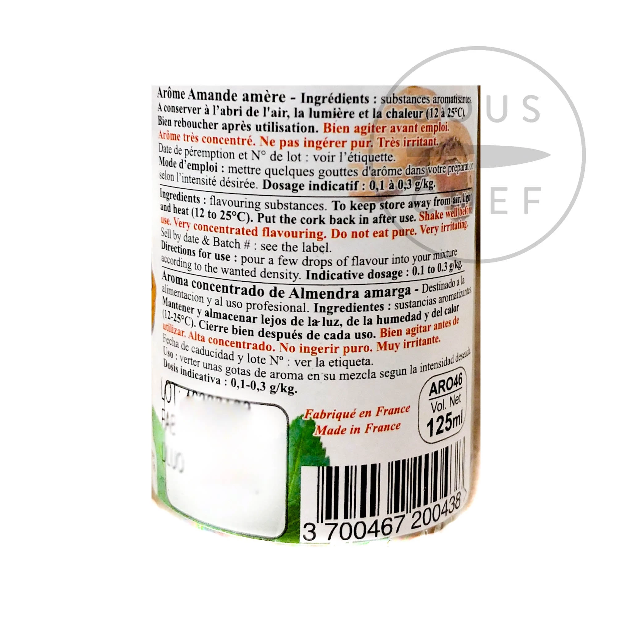 Questo sapore concentrato di mandorla amara porta un intenso sapore e aroma di mandorla amara alla cottura e alla pasticceria. Déco’rilieviI profumi concentrati sono utilizzati dai migliori chef e patissier di tutta la Francia, in torte, macaroni, ganachecchi, sorbetti, gelati, dolci e cioccolatini.
