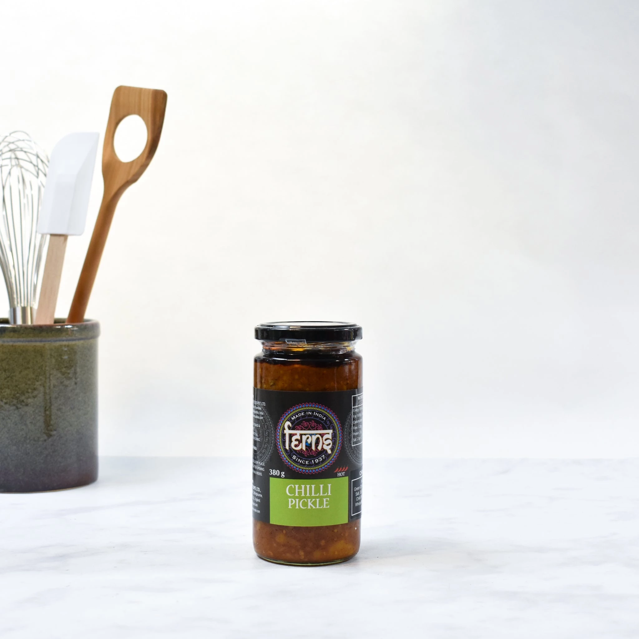 La ditta indiana Ferns’ è stata fondata oltre 70 anni fa.anni fa, quando la signora N Fernandes (Ferns for short!) iniziò a fare paste di sottaceti e curry nella sua cucina, ad est di Bombay, in India. Tre generazioni dopo, le paste di curry sono fatte allo stesso modo, nella stessa città in India, e con la stessagredients – una miscela tradizionale di spezie, olio e acqua. Il sottaceto è fatto alla sua ricetta originale con peperoncino intero raccolto a mano.