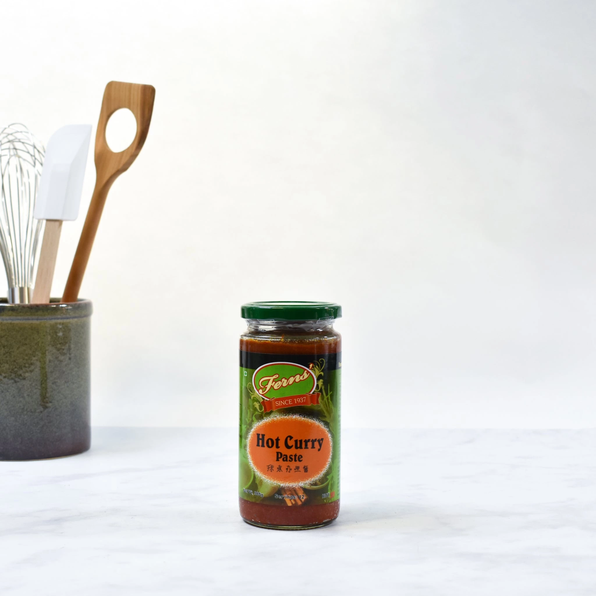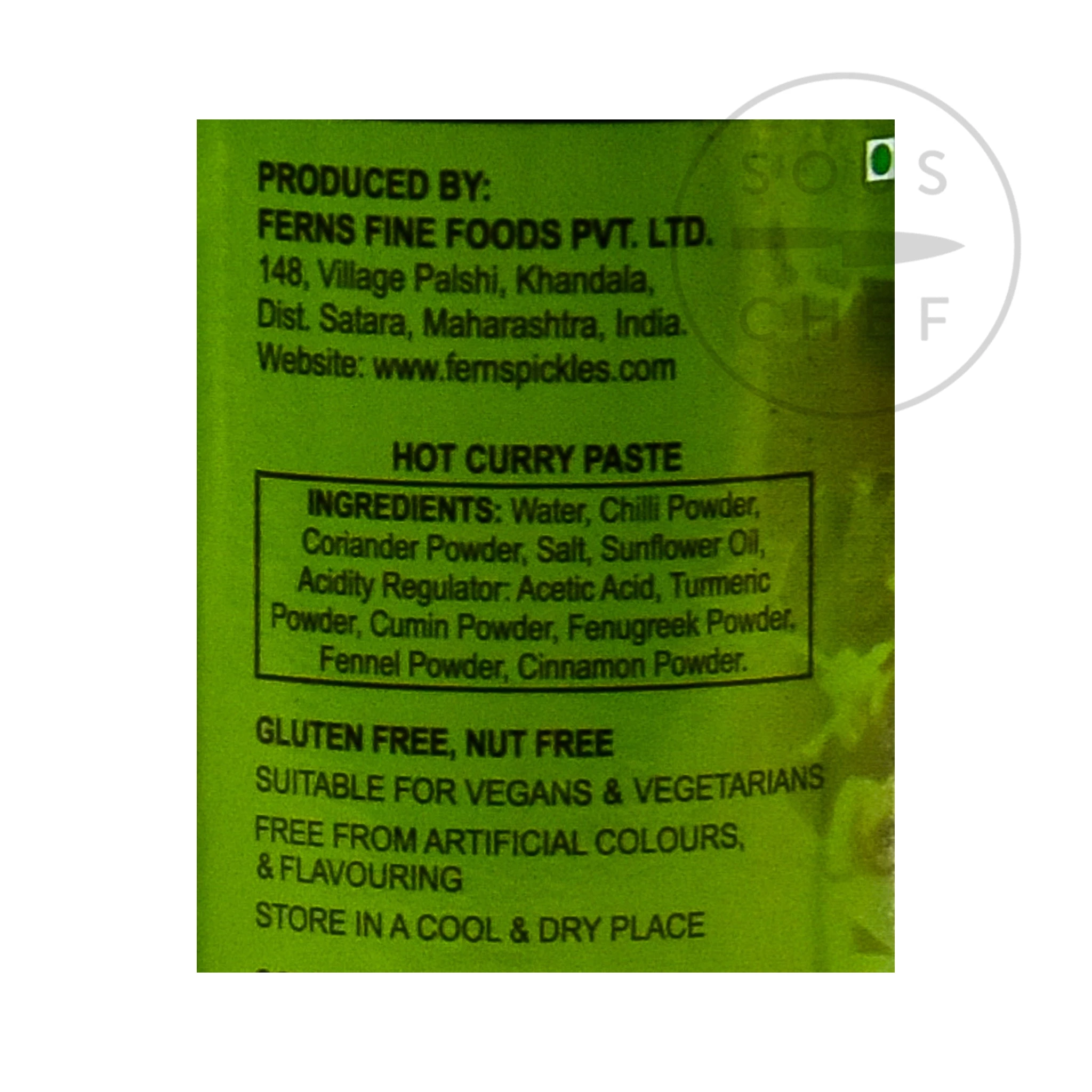 La ditta indiana Ferns’ è stata fondata più di 70 anni fa quando la signora N Fernandes (Ferns f)o breve!) ha iniziato a fare sottaceti e paste di curry nella sua cucina, a est di Bombay, in India. Tre generazioni dopo, le paste di curry sono fatte allo stesso modo, nella stessa città in India, e con gli stessi ingredienti – una miscela tradizionale di spezies, olio e acqua.