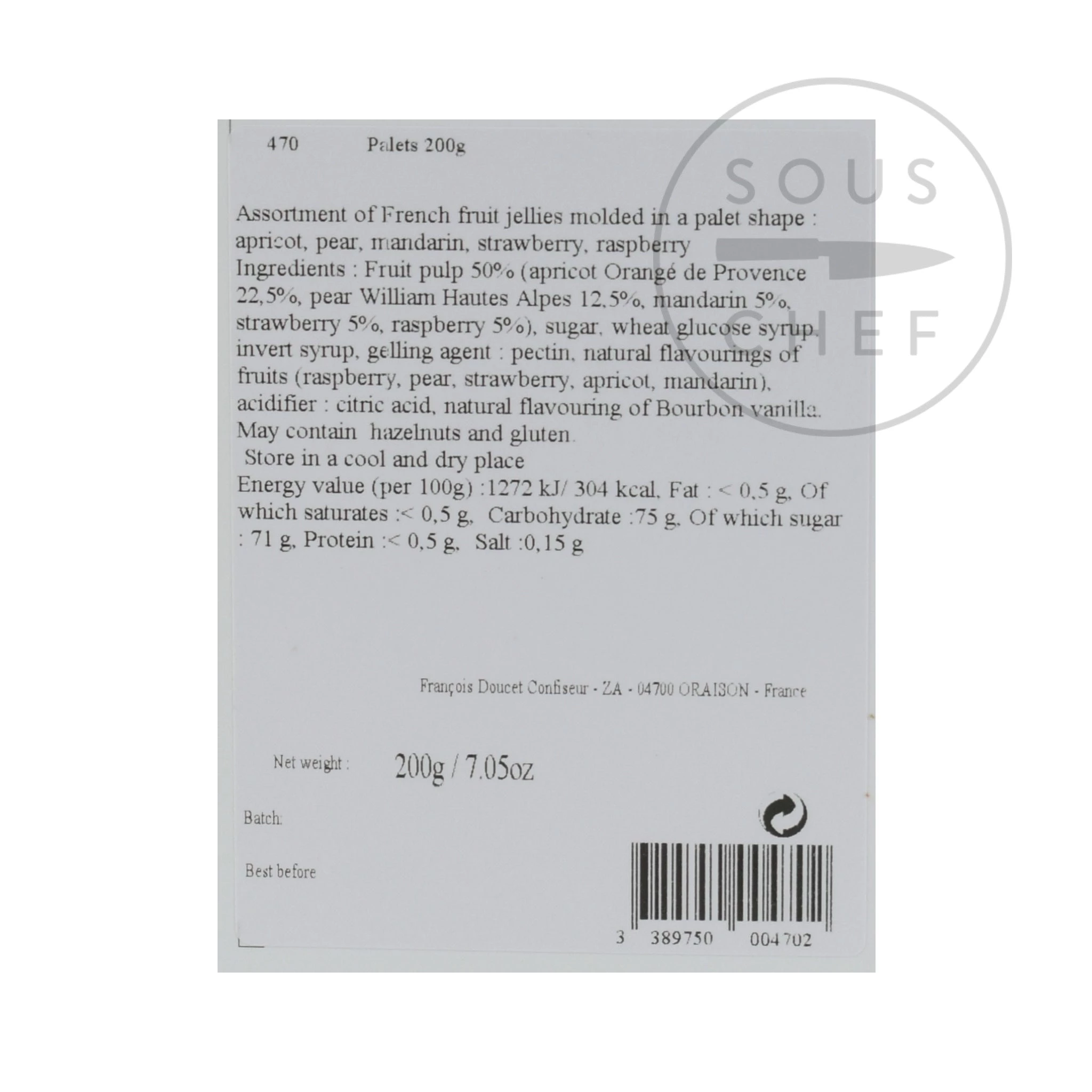 Fragrante, dolce e intensamente fruttato Le gelatine di frutta Francois Doucet sono la cosa perfetta da gustare alla fine di un pasto, o come un piccolo trattamento di metà mattina con una tazza di tè. Le gelatine sono fatte con albicocche e pere tIl cappello è coltivato in Provenza, così come i lamponi, le fragole e i mandarini. Le gelatine hanno una spolverata di zucchero e sono un trattamento molto adulto.Fanno un grande regalo, o si godono da soli! There are two size disponibili: