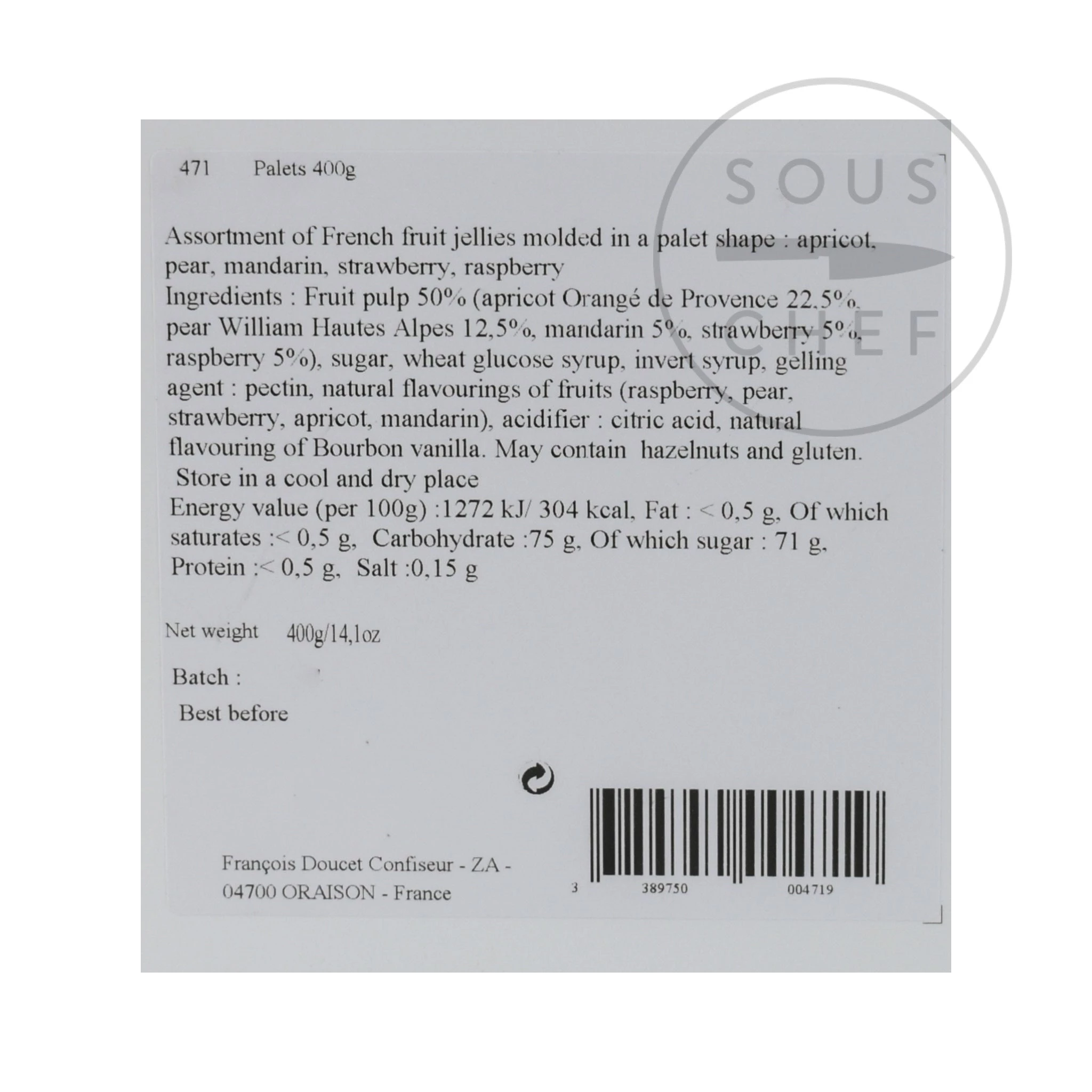 Fragrante, dolce e intensamente fruttato Le gelatine di frutta Francois Doucet sono la cosa perfetta da gustare alla fine di un pasto, o come un piccolo trattamento di metà mattina con una tazza di tè. Le gelatine sono fatte con albicocche e pere tIl cappello è coltivato in Provenza, così come i lamponi, le fragole e i mandarini. Le gelatine hanno una spolverata di zucchero e sono un trattamento molto adulto.Fanno un grande regalo, o si godono da soli! There are two size disponibili:
