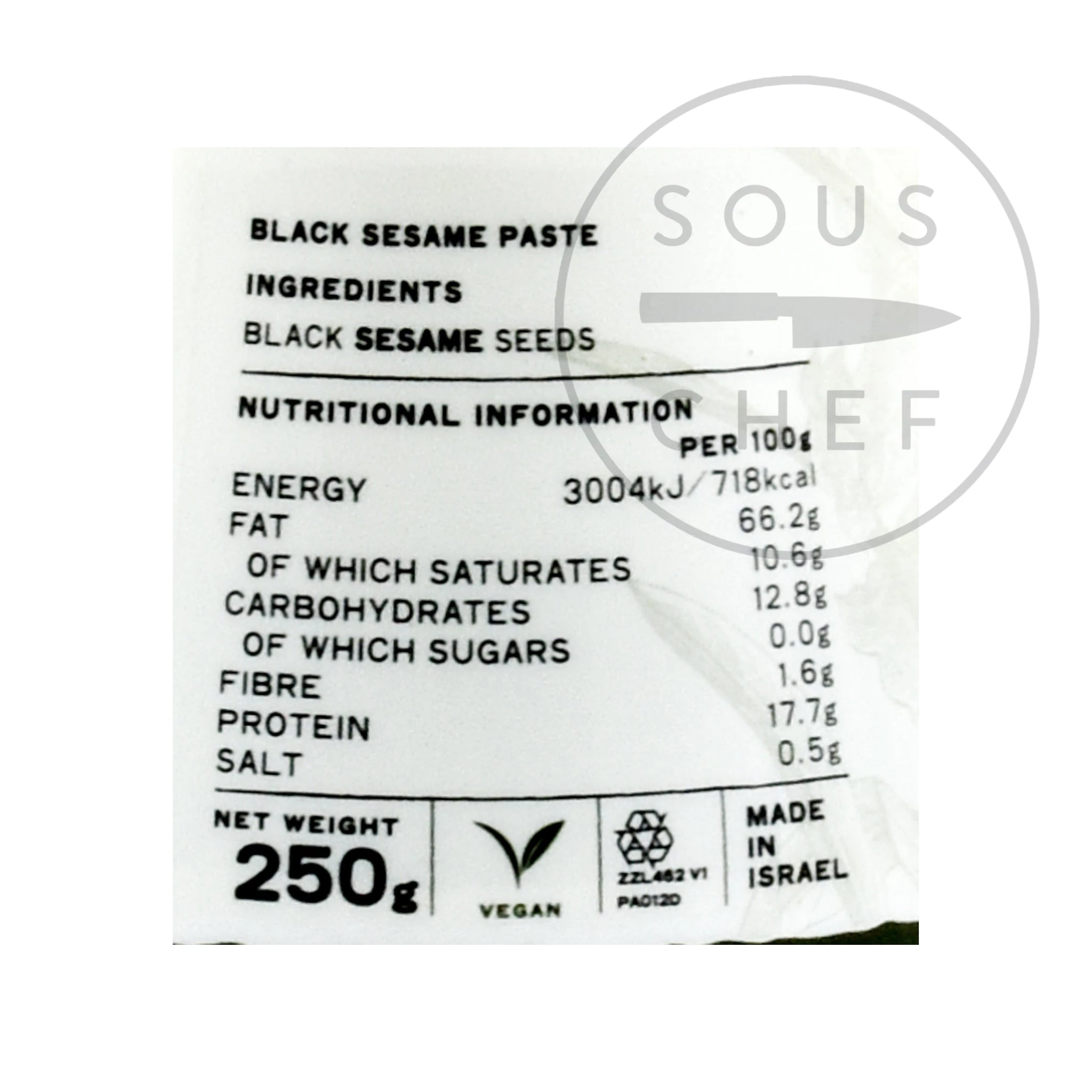Belazu solais black tahini è liscia e nocciola con un colore sorprendente dai semi di sesamo nero.