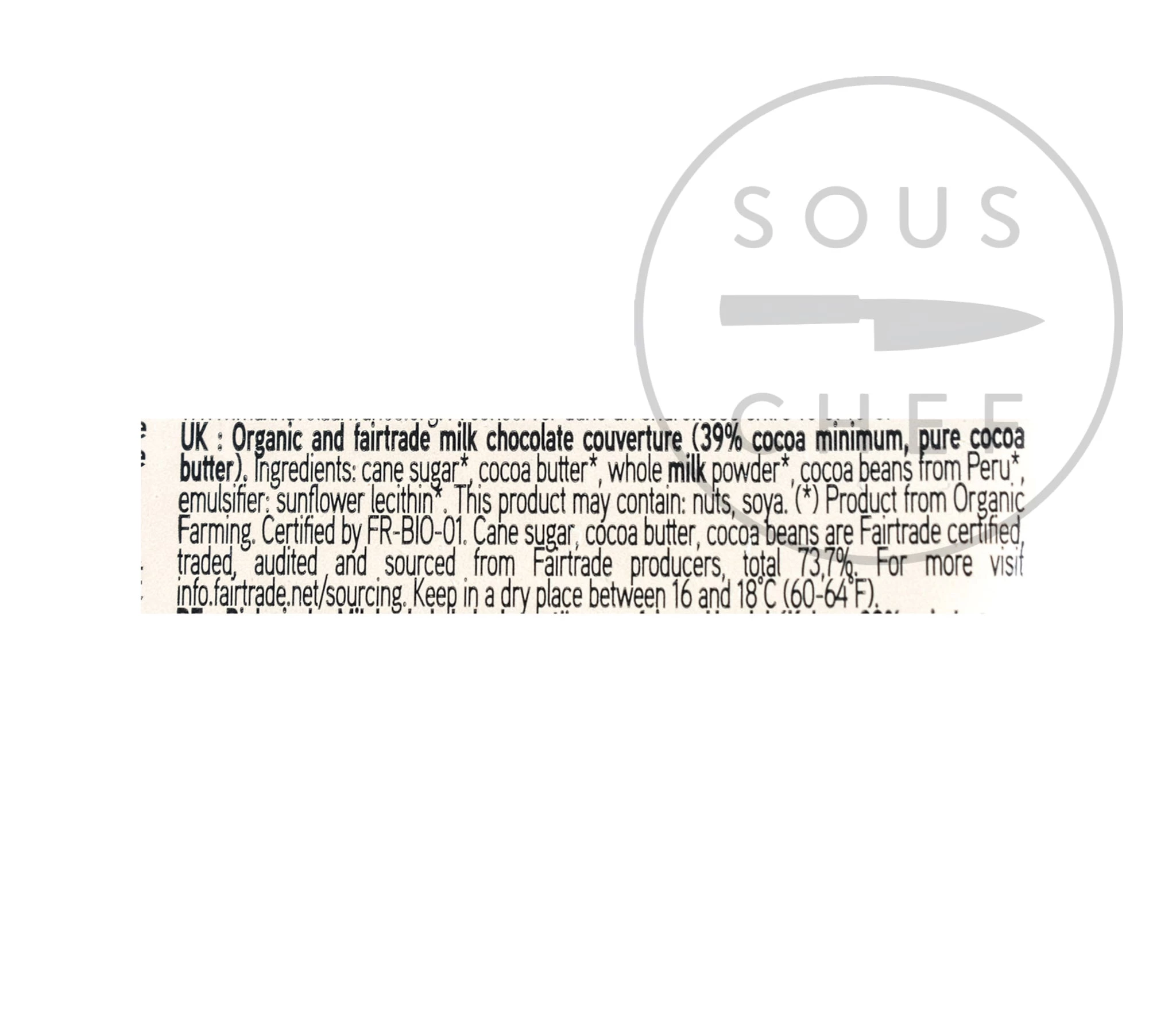 Smooth and cremous with a sweet sweet sweetness, these Organic and Fairtrade chocolate chips contengono un minimo di 39% di cacao solidi e sono costituiti da un’unica varietà di fave di cacao peruviano. Le chips di cioccolato modellato singolarmente sono facili da pesare e molto veloce da sciogliere con il loro marchio Valrhona feves o forma di fagiolo – ottimo per pro