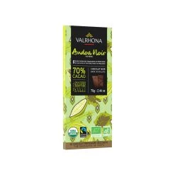 Valrhona Andoa 70% barretta di cioccolato fondente è creato da un’unica origine cacao coltivato a Piura nel nord del Perù.Un aroma tostato pervadente porta profondità e lunghezza del sapore caratteristico del cioccolato Valrhona.