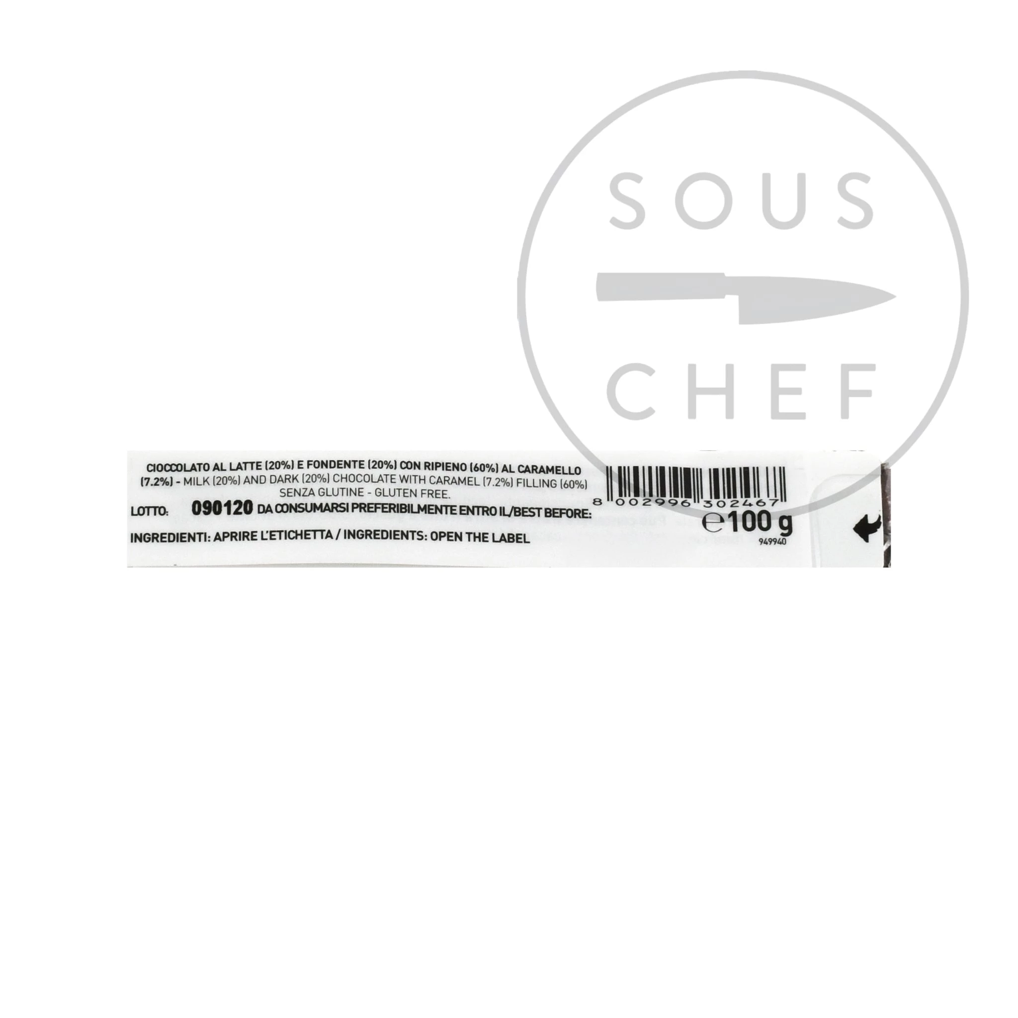 Ingredienti: Zucchero, burro di cacao, Piemonte hazelnut paste, massa di cacao, interi latte polvere, caramello – 7,2% (zucchero, sciroppo di glucosio, cream (da milk), burro (da milk)), cacao in polvere, emulsionante: soylecitina, anidra milk grasso, sapore naturale di vaniglia.