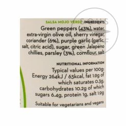 Ingredienti: Sorbitolo* (Humectant), acqua, polvere di rafano (22%), soybean oil, salt, wasabi powder (5%), mustard polvere, maltodestrina, amido di mais modificato, mustardolio, regolatore di acidità (acido citrico), addensante (gomma xantana), colore (blu brillante), curcuma. *Il consumo eccessivo può produrre effetti lassativi.