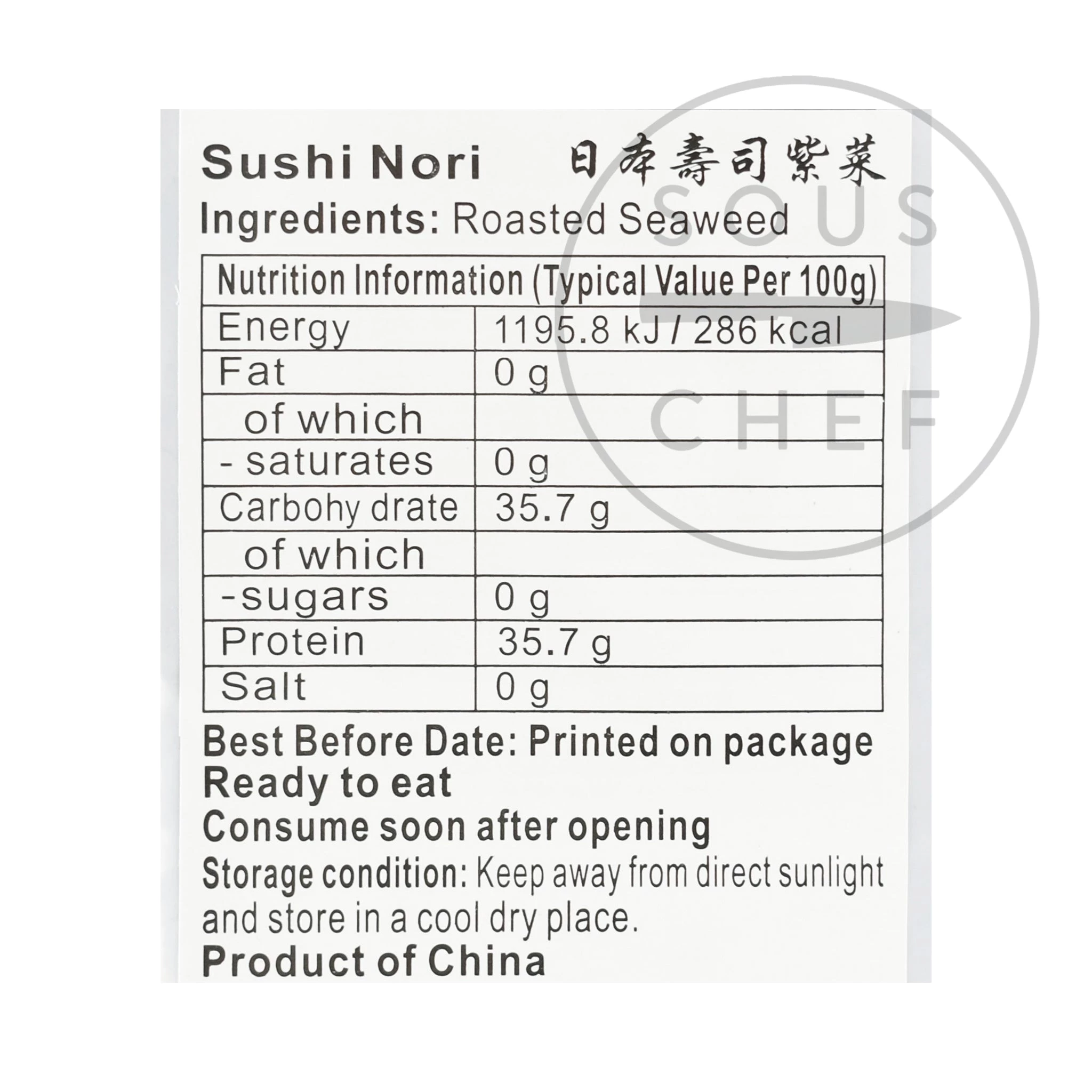 L’alga Nori è essenziale per la produzione di sushi. Queste lamine quadrate di alga nori arrostite sono ideali per fare il proprio sushi maki e roll a mano, o temaki. I quadrati 20 x 20 cm sono forti e pieghevoli con un sapore salino-minerale, oceano.