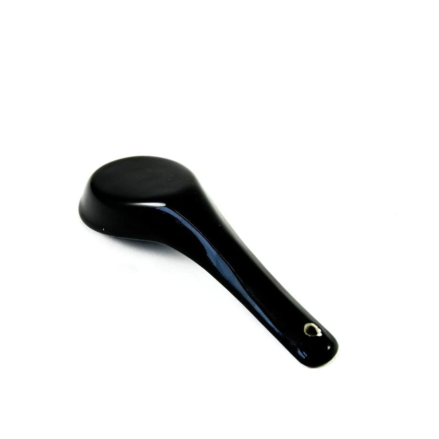 Questo cucchiaio di porcellana nera segue il design tradizionale dei cucchiaini cinesi, con un grande bacino poco profondo perfetto per sorseggiare liquidi.