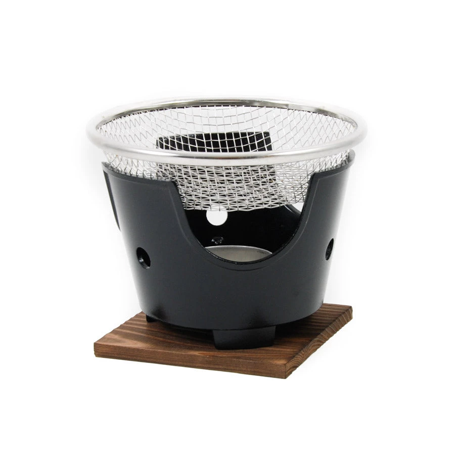 Usare il cestino in acciaio inox con la griglia konro da tavolo per carne, verdure e gamberi.