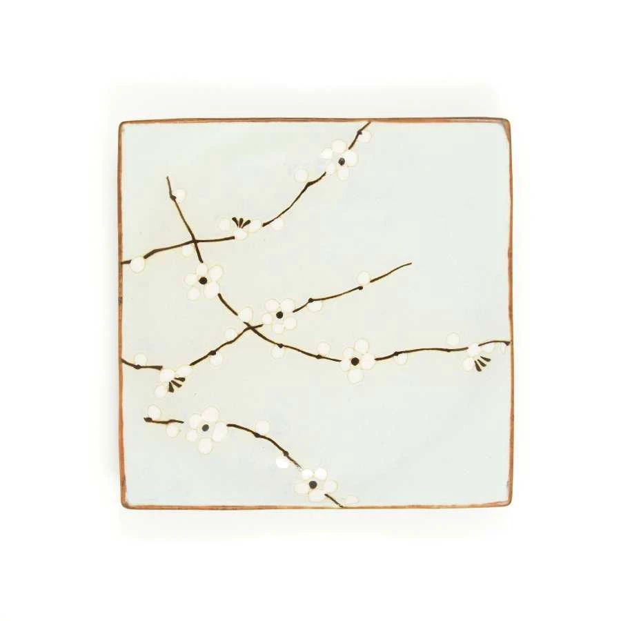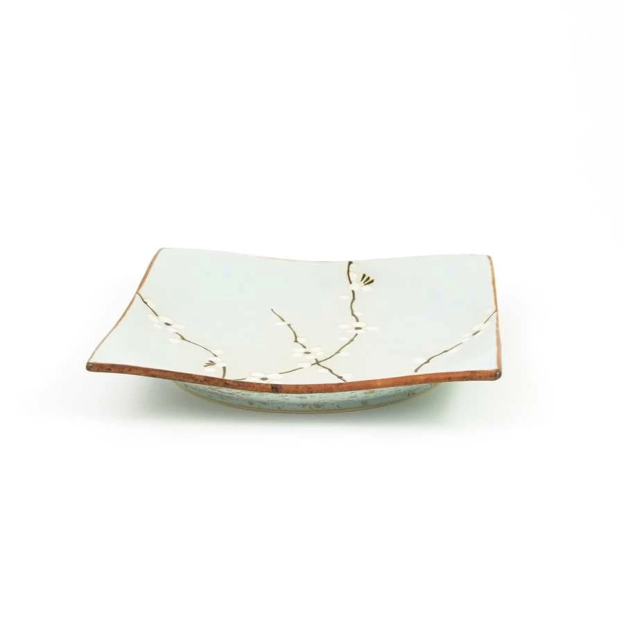 Bellissimo piatto di ceramica in stile giapponese con disegno a fiori.