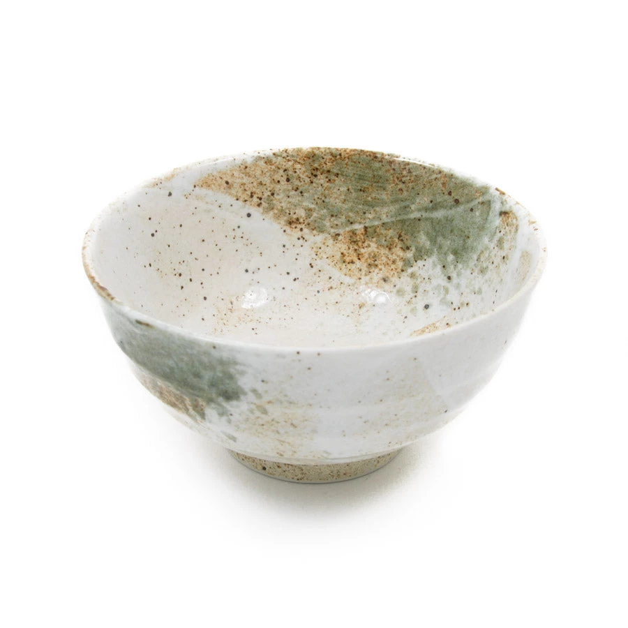 La ciotola di noodle in gres Yukishino è vetrata in colori neutri che suggeriscono un paesaggio sereno di neve. Questa ciotola giapponese ben strutturata è ideale per la cena di tutti i giorni. Provate a servire zuppe di noodle riscaldanti o abbondante carne giapponese e stufato di patate (nikujaga).