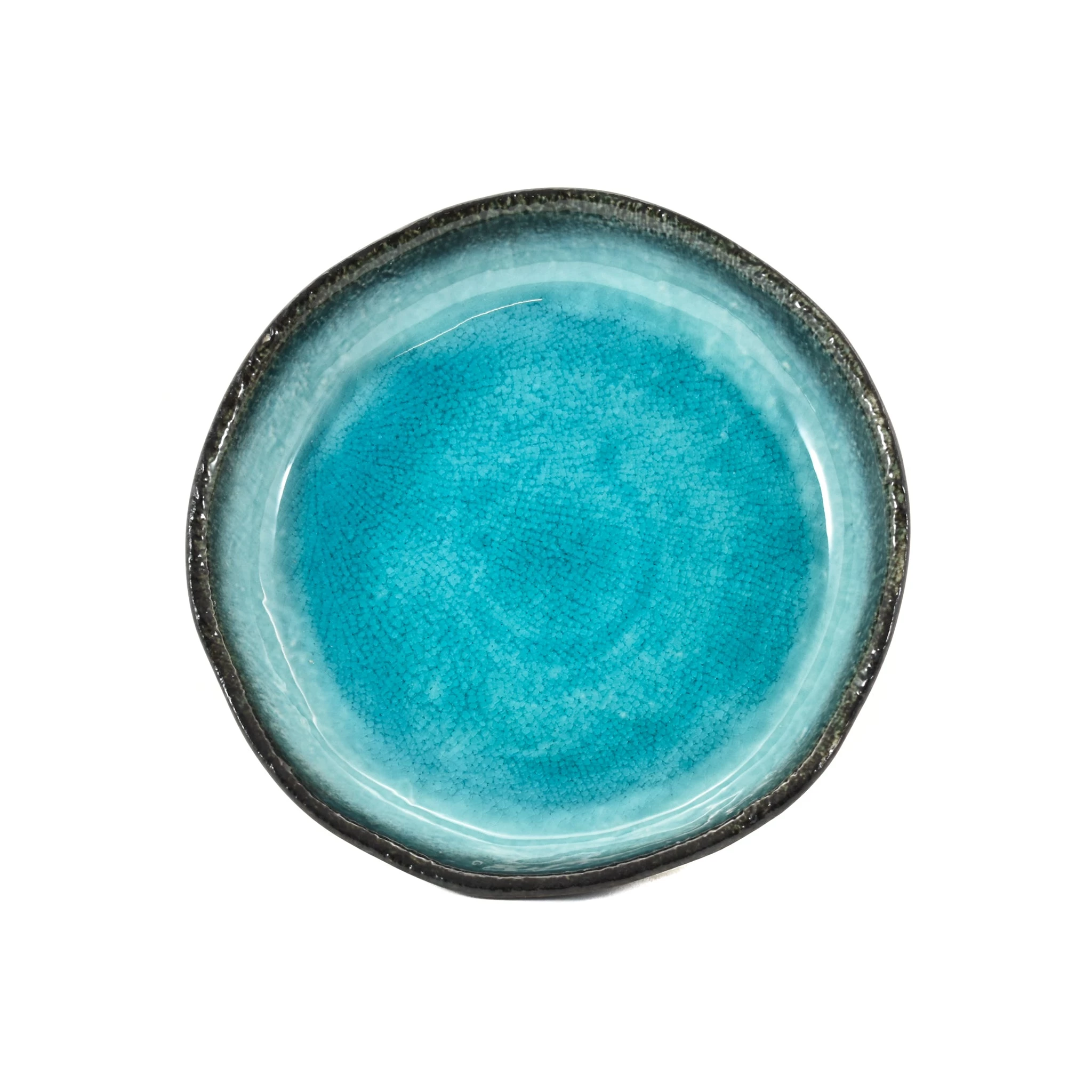 Il piatto rotondo in gres turchese giapponese crea una tavola mozzafiato, ed è un modo meraviglioso per presentare piatti colorati. Lo smalto esotico e azzurro ha un’atmosfera estiva, mediterranea.