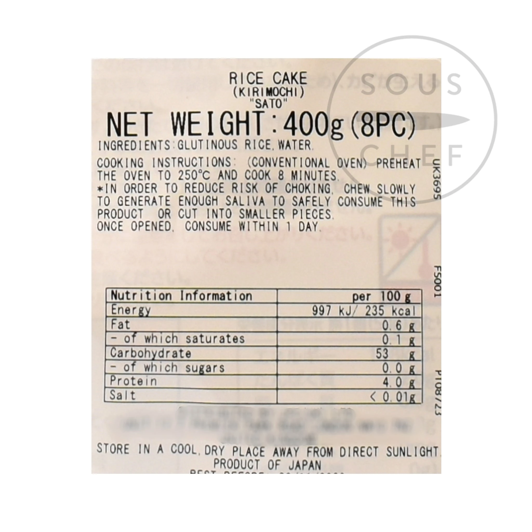 Contiene 8 porzioni individualmente avvolte.Ingredienti: riso glutanoso, acqua