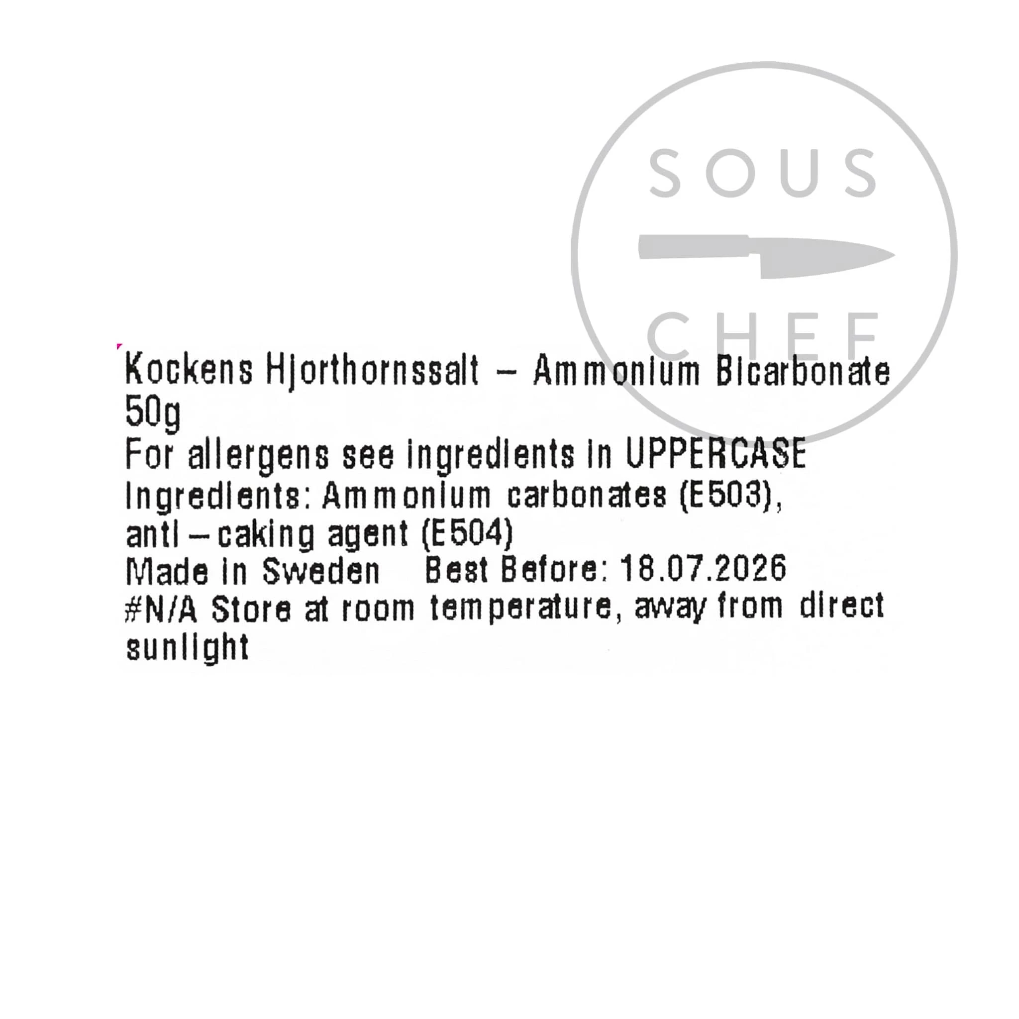 Hjorthornssalth Baker’s Ammoniaca è un agente lievitante originario della Svezia. Il nome Hjorthornssalth si traduce in salmastro di mirtillo, che si riferisce alla piuma leggera texture and fluffiness it produces in the finished coked product