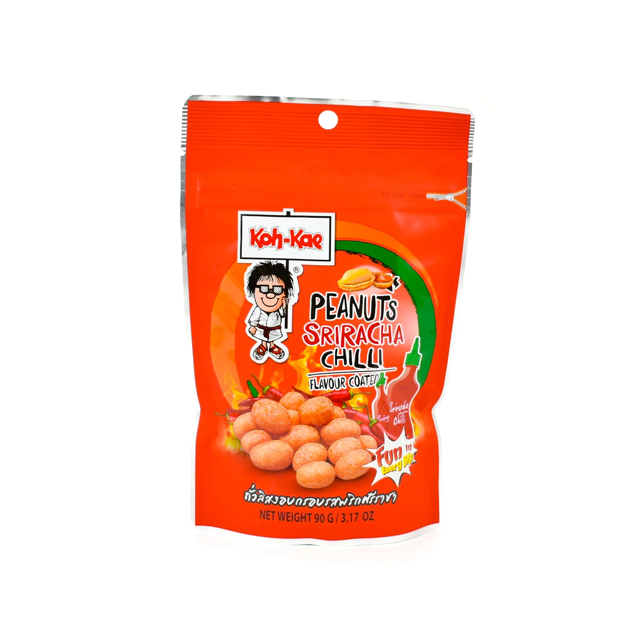 Ingredienti: Peanuts (50%), wheatflour, farina di riso glutinoso, maisflour, polio di alm, aroma di sriracha [aromatizzante (olio di salsa di soia, olio di semi di mustard), zucchero, sale, msg: e621; guanilato di sodio: e627; disodio inosinato: e631; diossido di silicio: e551; acido citrico: e330; maltodestrina, amido di tapioca, salsa di soia, olio vegetale (palm/coconut, girasole, riso, olio di canola), destrosio, amido di mais modificato, capsaicin], zucchero, sale, potassio acesulfame: e950; bicarbonato di sodio: e500. Gli allergeni sono elencati in bold.