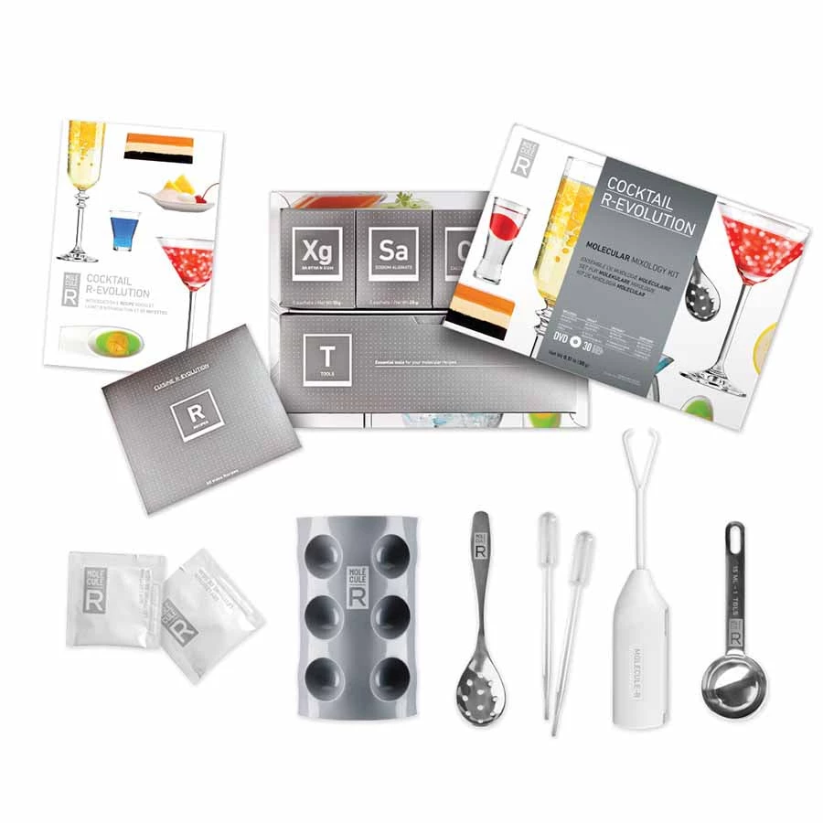 Il Kit R-Evolution Molecule R-Cocktail include tutto ciò di cui hai bisogno per trasformare la tua cucina in un cocktail bar modernista. Servi il tuo mojito in una sfera che esploderà in bocca, morderai in un Martini a strati o aggiungi un tocco di schiuma di lime ariosa alla tuaTequila shots! Con il nuovo kit di mixologia dei cocktail Molecole-Récoils imparerete a decostruire i vostri cocktail preferiti.