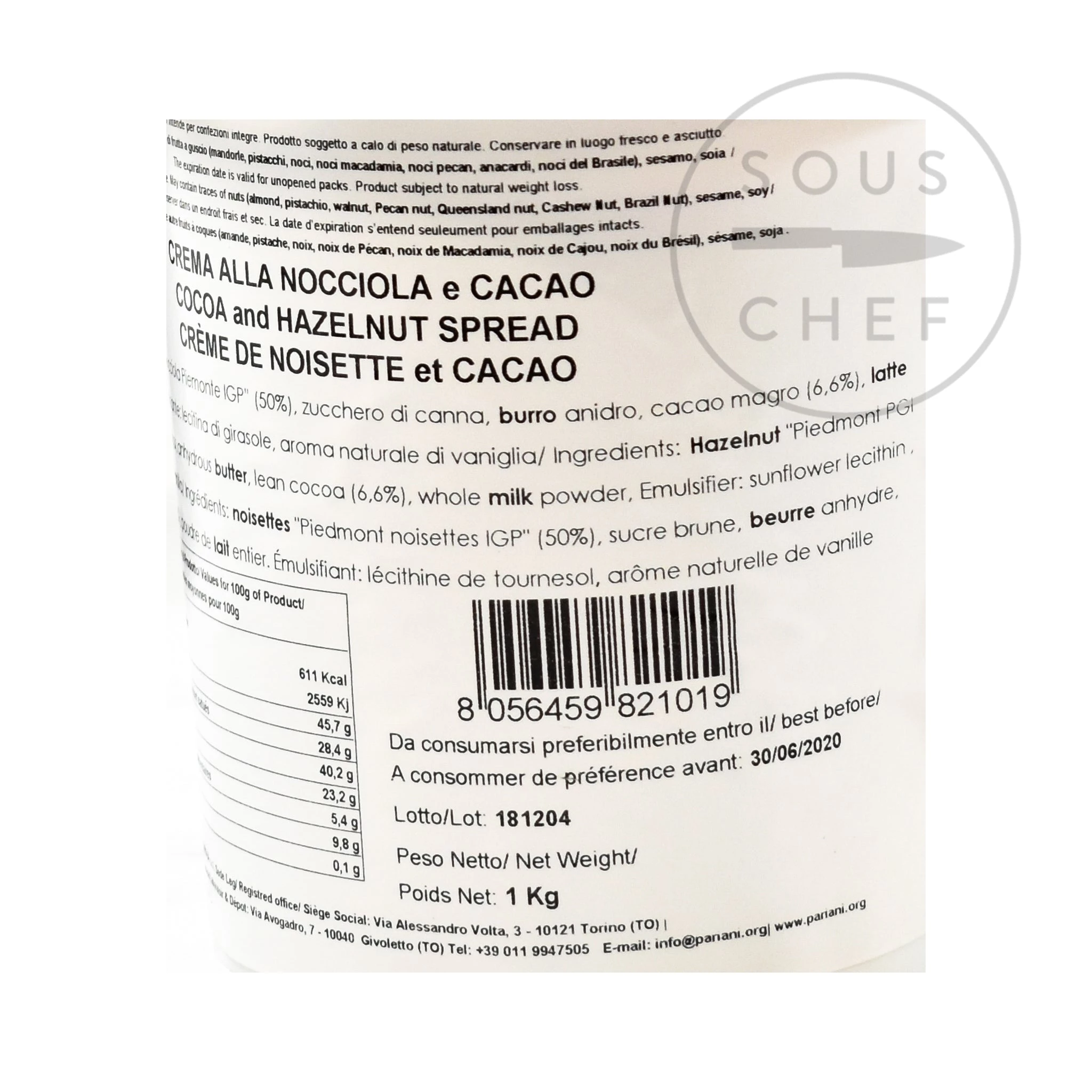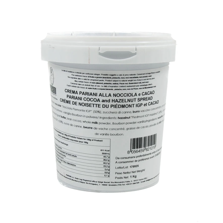 La pasta di gianduja di nocciole Pariani è fatta con cacao e nocciole Piemonte IGP, spesso considerate le migliori nocciole del mondo. La spalmatura di cioccolato ultra-liscio e nocciola è fatta con un accenno di vaniglia borbonica ed è un ripieno istante indulgenteper i cioccolatini fatti in casa.