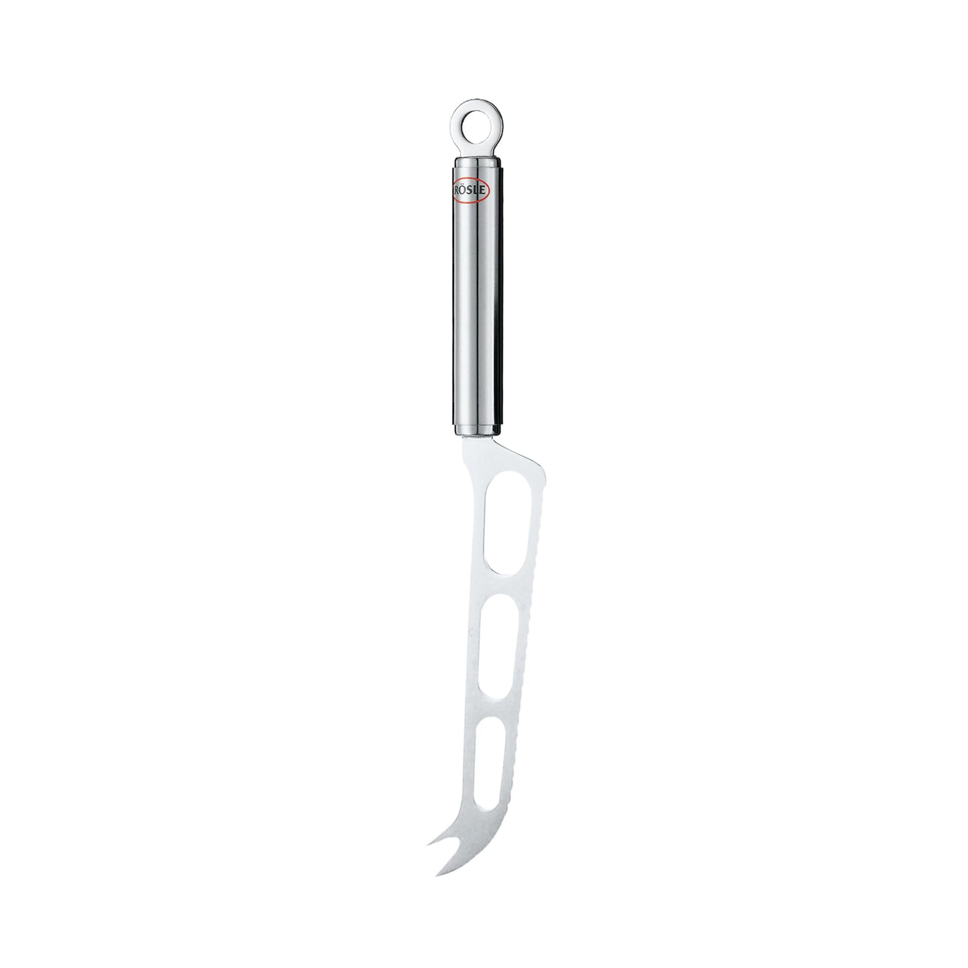 Utilizza il coltello Rosle®s Modern Classics per tagliare e servire fette di noce Comte, Gouda e Manchego. Realizzato in acciaio inossidabile, questo coltellorp coltello ha una lama smerlata per tagliare ordinatamente il formaggio duro, mentre i grandi ovali tagliati fermano le fette dal attaccare alla lama. È anche possibile utilizzare l’estremità appuntita per trasferire il formaggio da tavola a piastra.
