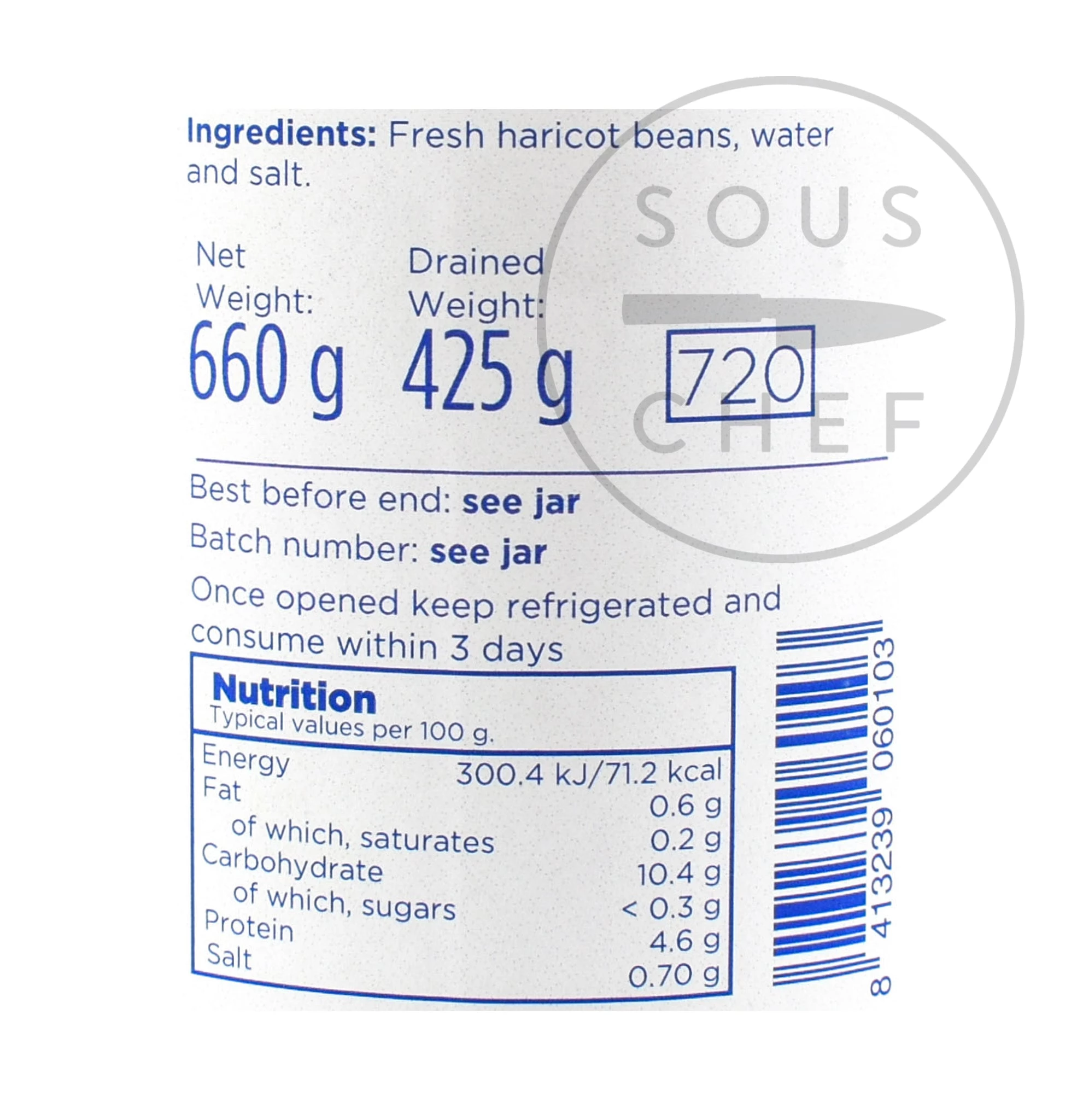 Questi fagioli freschi di Navarrico sono raccolti dalla pianta del haricot e cotti freschi prima di conservare in un barattolo – fantastico servito con il biancopesce. Con tonalità leggermente verde e consistenza fine, questi piccoli fagioli sono popolari nella cucina spagnola nelle regioni della Navarra e della RIoja.