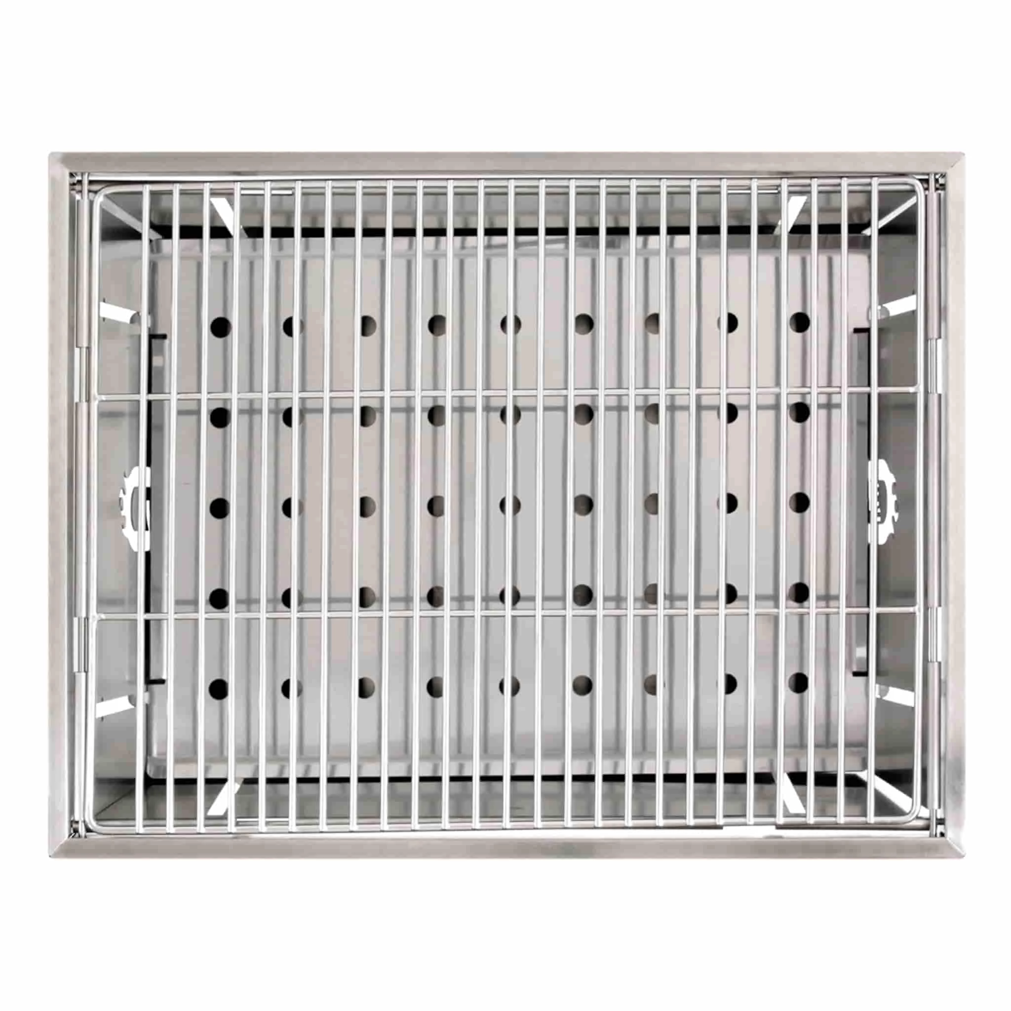 The ragguardeous surface area of the 30cm xLa griglia da 38 cm consente di soddisfare rapidamente una folla affamata – insaccati e hamburger per un massimo di 12 persone. The ProQ Flatdog requires only an inch of charcPer una cottura efficiente, ma la griglia rialzata consente anche di impilare i carboni se è necessario più calore.