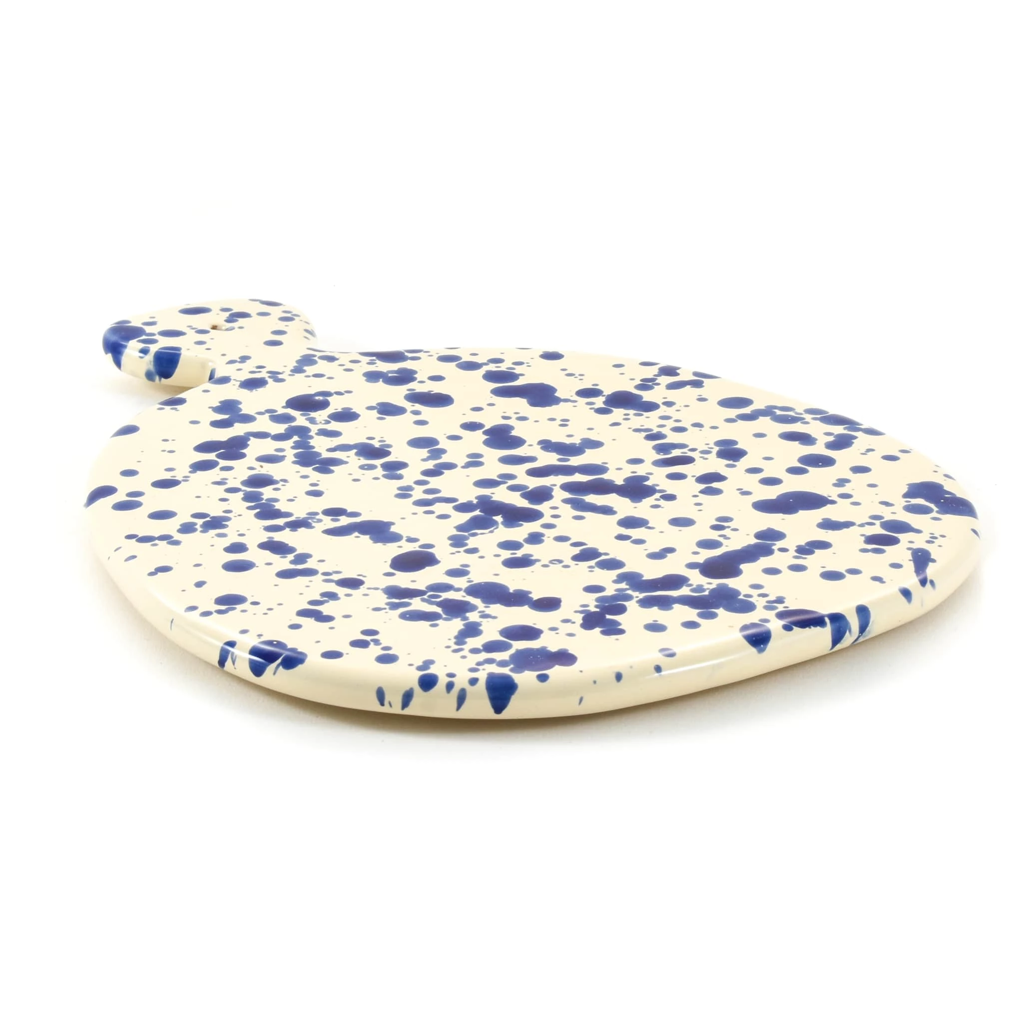 The off-white ceramic platter is decorated with splashes of blue, give an artist’s tavolozza vibe to this pezzo di stoviglie.