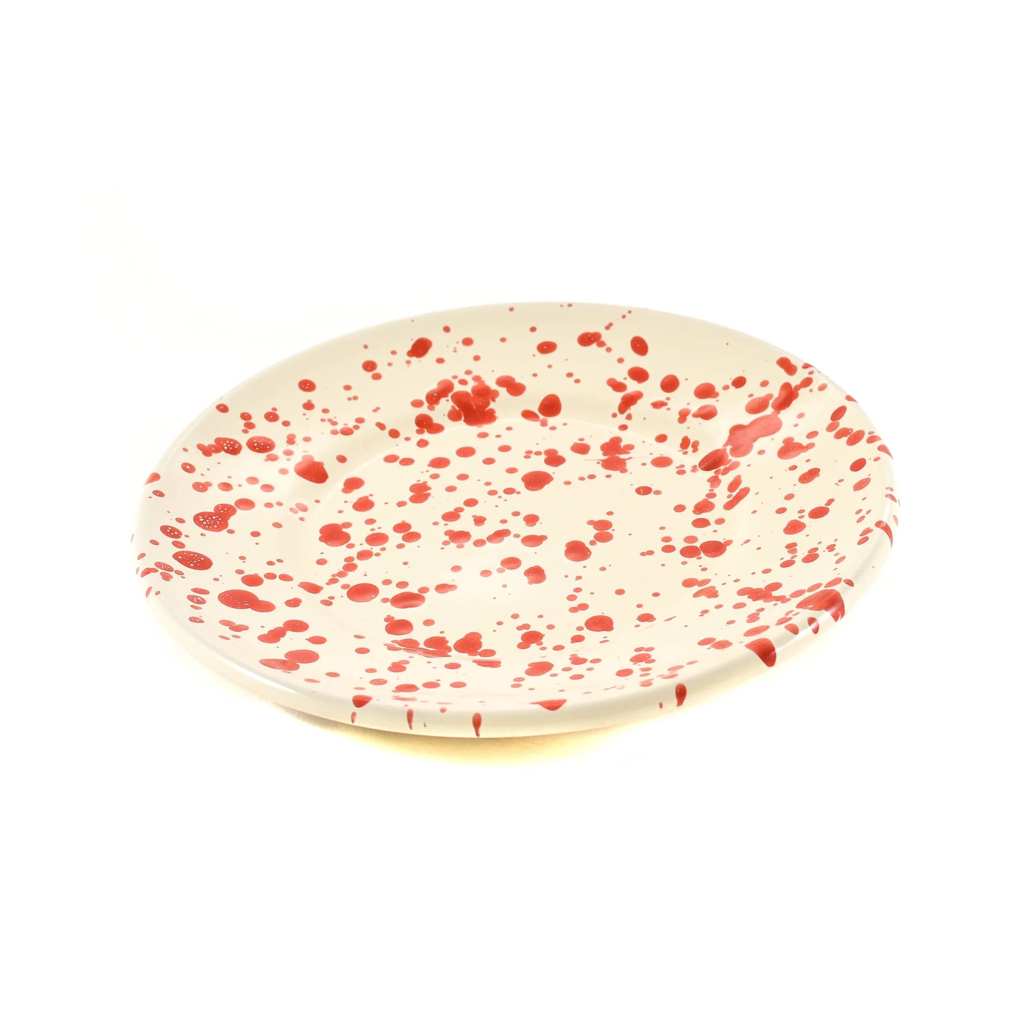 Il piatto laterale dello schizzo rosso della Puglia è il modo elegante di servire bruschetta, burrata e insalate fresche di fichi.ispirata al mare, con un sorprendente disegno a schizzi dappertutto.