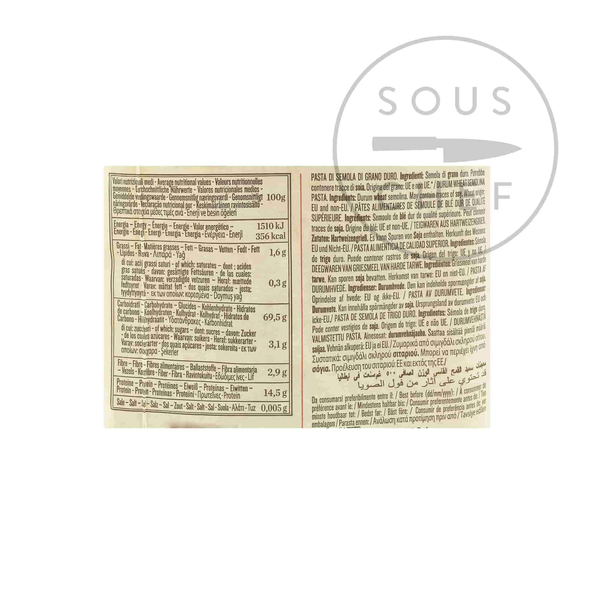 Ingredienti: duro grano saraceno semolina. Gli allergeni sono elencati in bold.