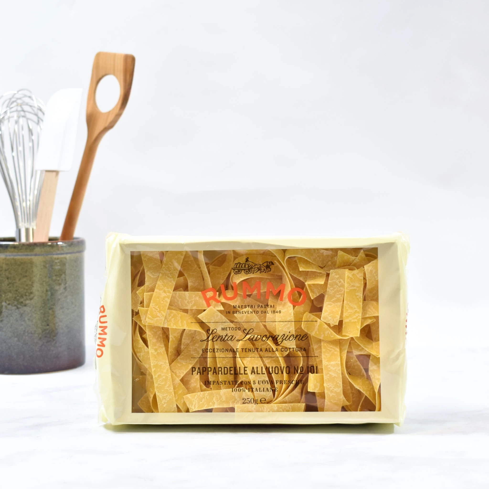 Oggi, ogni pacchetto di pasta di Rummo promette:eccezionale tenuta all cotturaeccezionalemente salda quando cotta. Sia che la pasta cuoca per 5 minuti troppo a lungo in padella, o che aspetti in salsa per 20 minuti mentre tutti vengono a tavola, avrete pasta perfetta ogni volta.