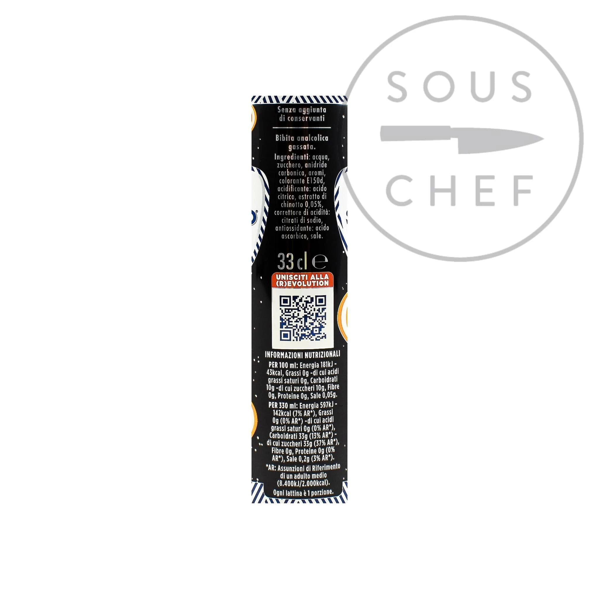 Ingredienti: Acqua, zucchero, anidride carbonica, aromi, colore: E150d, acidificatore: acido citrico, 0.05% estratto di chinotto, regolatore di acidità: citrato di sodio, antiossidante: acido ascorbico, sale