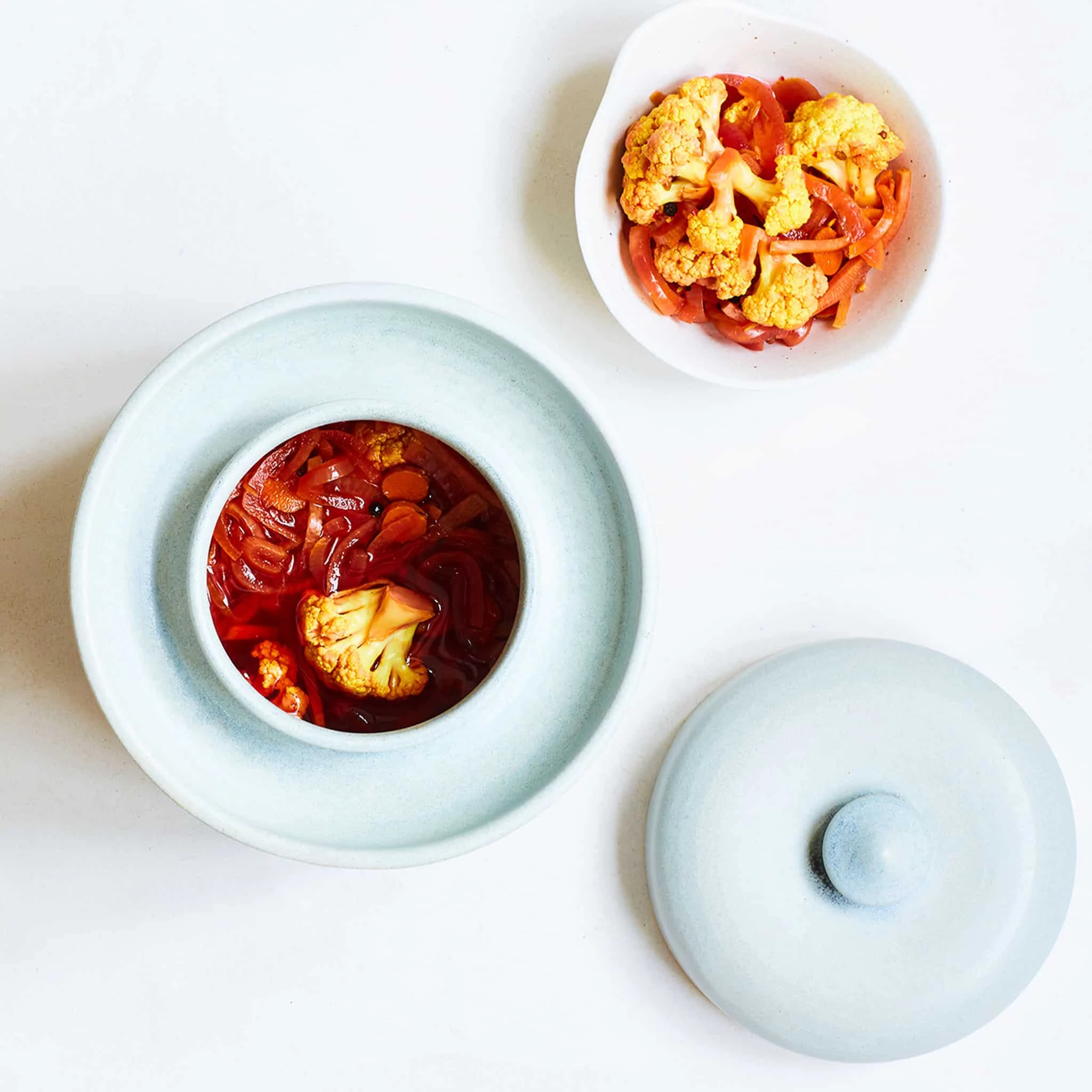 Utilizza questo gres fermentante in gres fatti a mano per fare sottaceti gingy e kimchi punchy a casa.Ing. attrezzatura da cucina che può essere usata più volte.