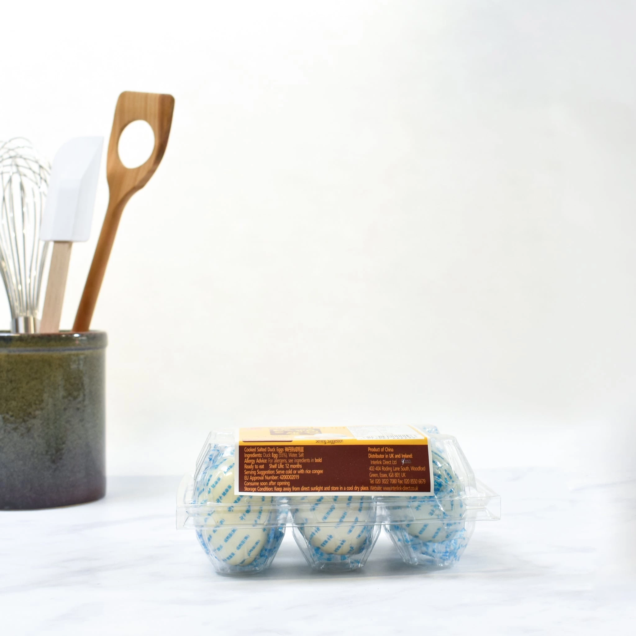 Le uova di anatra sbucciate sono state tradizionalmente realizzate imballandoogni uovo in una miscela umida di sale e carbone. Le uova sono state poi lasciate a curare per diversi mesi. In questi giorni, è più comune vedere uova di anatra salate che vengono fatte immergendo le uova in salamoia per tra 3 e 6 settimane.
