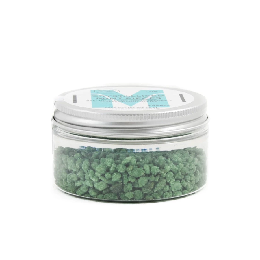 I pezzi di foglie di menta cristallizzate sono una classica decorazione per cioccolatini e torte, oltre che una bella decorazione per un gelato al cioccolato e menta. Provate anche a utilizzare i pezzi di foglie di menta cristallizzata per decorare creme di menta piperita, o cospargere la mentaframmenti su una cheesecake di calce per aggiungere una torsione simile al mojito.