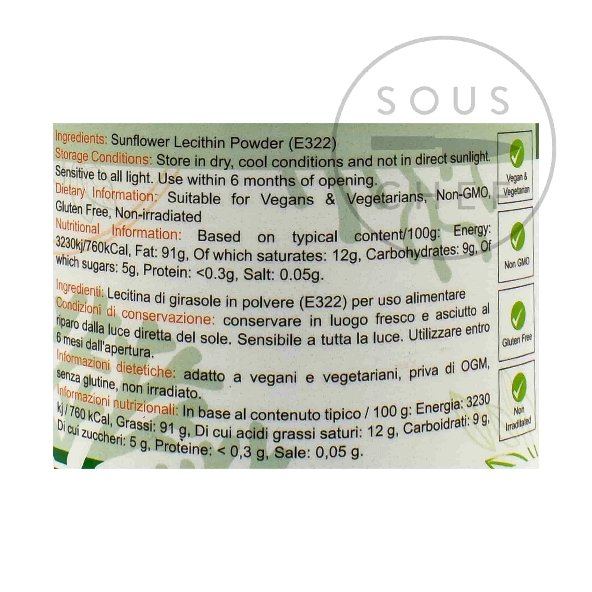 Sunflower lecitina in polvere darà ai vostri biscotti una sensazione più liscia, condimenti insalata una consistenza più coerente e salse roux una finitura più spessa.