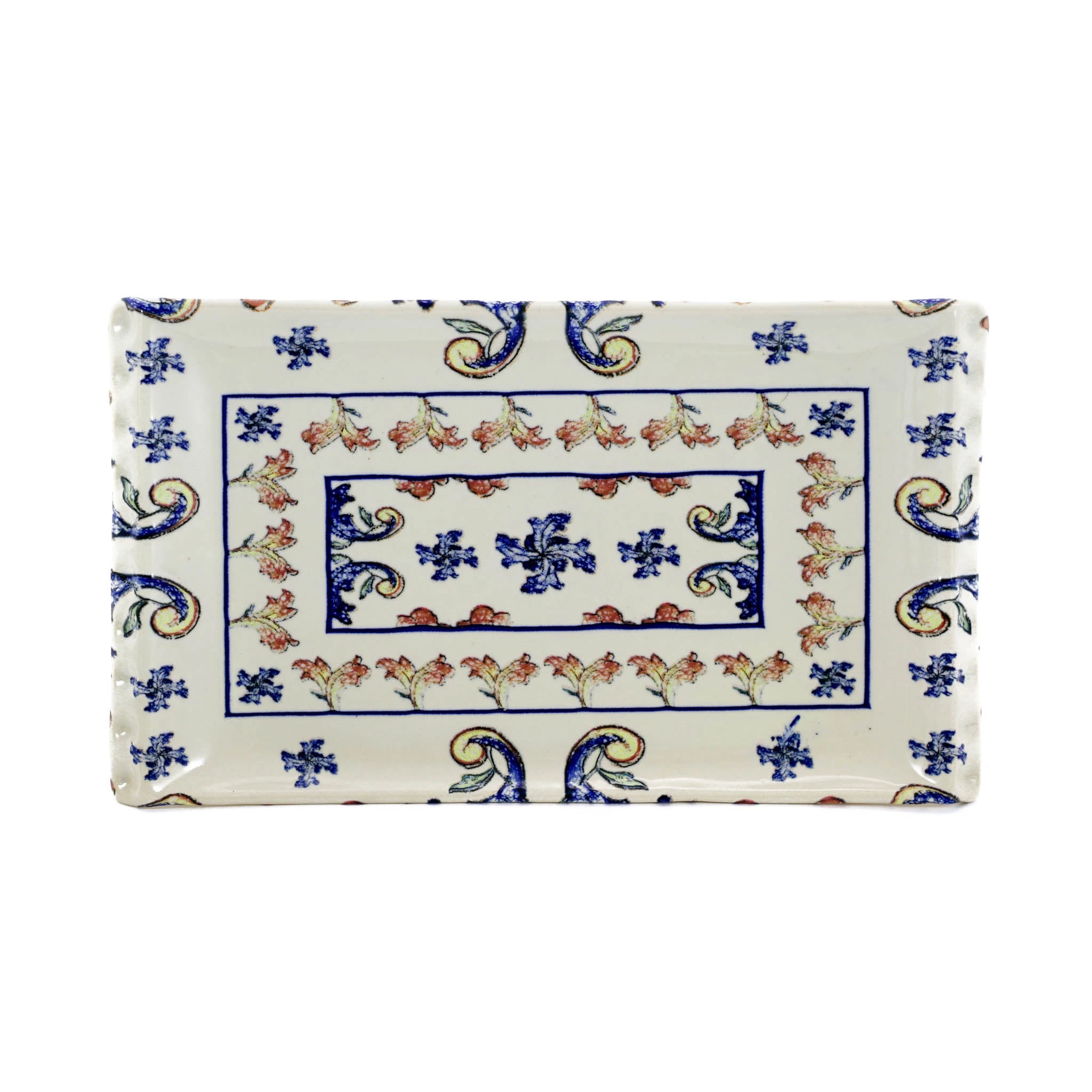 Il vassoio da portata in gres Alba è un delicato pezzo di stoviglie per servire la baklava sciroppata.Con il suo design rustico roteato in blu e rosso, questo bellissimo vassoio fatto in Turchia apparirà grande contro una tovaglia bianca, o mescolata e abbinata a stoviglie più vibranti.