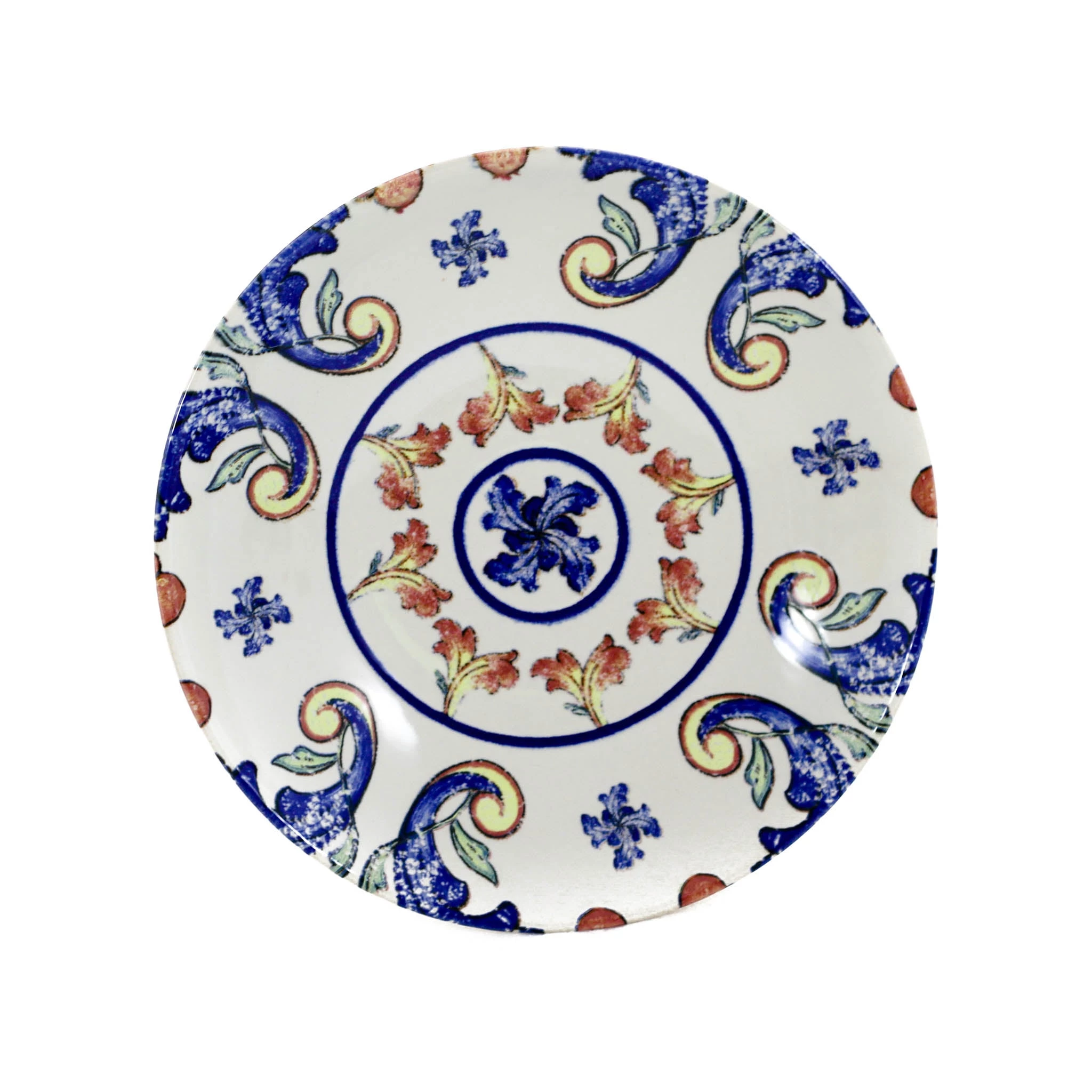 La ciotola da portata bassa in gres Alba è perfetta per presentare zuppe e stufati a un tavolo di ospiti. La ciotola in gres, realizzata in Turchia, ha un motivo rustico marmorizzato, con sfumature di blu, giallo polveroso e pop di rosso.