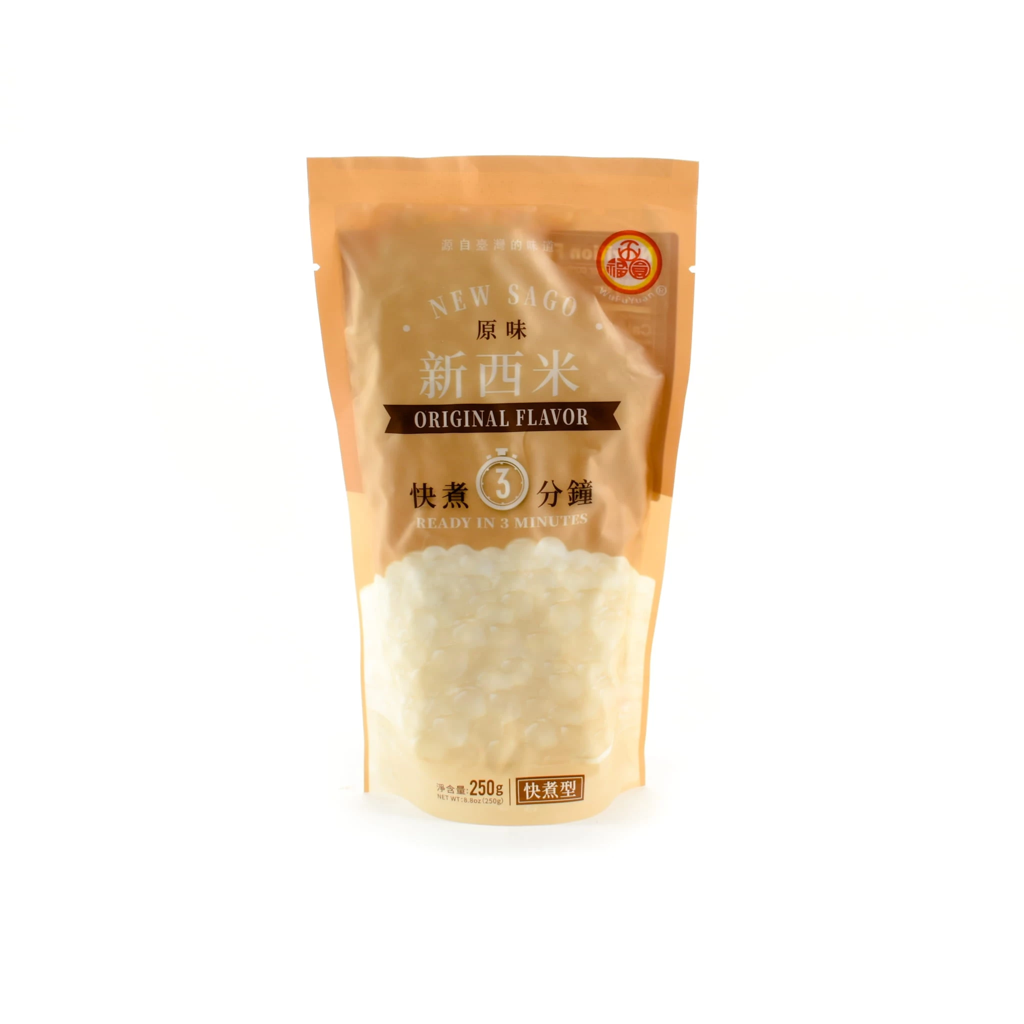 Quick cuoco tapioca perle sono tradizionalmente utilizzati per fare la bevanda tapioca popolare tapioca, tè a bolle, così come dessert di ghiaccio rasati e zuppe dolci. Tapioca perle sono piccole, sfere traslucide a base di amido di tapioca (which proviene dalla radice di cassava) e ha una consistenza masticabile. Queste perle di tapioca non hanno ingredienti aggiunti, dando loro un sapore neutro, e sono state precotte, quindi si preparano in 3 minuti.
